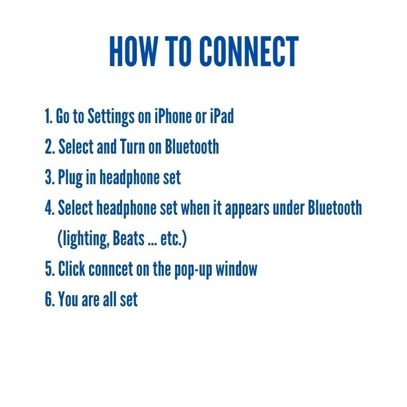 Earphones Headphones For Apple iPhone Pro/14/13/12/11/X Bluetooth Wired Earbuds How to Connect: 1. Go to Settings on iPhone or iPad 2. Select and Turn on Bluetooth 3. Plug in headphone set 4. Select headphone set when it appears under Bluetooth 5. Click conncet on the pop-up window 6. You are all set Features: Bluetooth Version: 5.0 Frequency: 2.4Ghz Voice prompts: Yes Microphone: Yes Wired: Yes Built-in Bluetooth super HD Surrounded Stereo Clear and Loud Sound Biult-in remote controller that lets you adjust the volume Adopt the advanced CVC6.0 active noise-cancellation. Built-in superior HD microphone provide clear and loud sound Lightweight, ideal for everyday wearing, listening while exercising, working, conference, indoor and outdoor (Note:Open the bluetooth first, after inserting the earphone, click in the pop-up window to use it.) Compatible with: Apple iPad Pro/Mini/Air 2, Apple iPhone 6, Apple iPhone 6 Plus, Apple iPhone 6s, Apple iPhone 6s Plus, Apple iPhone 7, Apple iPhone 7 Plus, Apple iPhone 8, Apple iPhone 8 Plus, Apple iPhone X, Apple iPhone XR, Apple iPhone XS, Apple iPhoneXS-MAX, Apple iPhone 11/11 Pro X/XS/XS Max/XR, Apple iPhone 12/12 Pro Max, Apple iPhone 13/13 Pro Max, Apple iPhone 14/14 Pro/ 14 Pro Max Package List: 1 Pair Bluetooth Build-in Headphone White