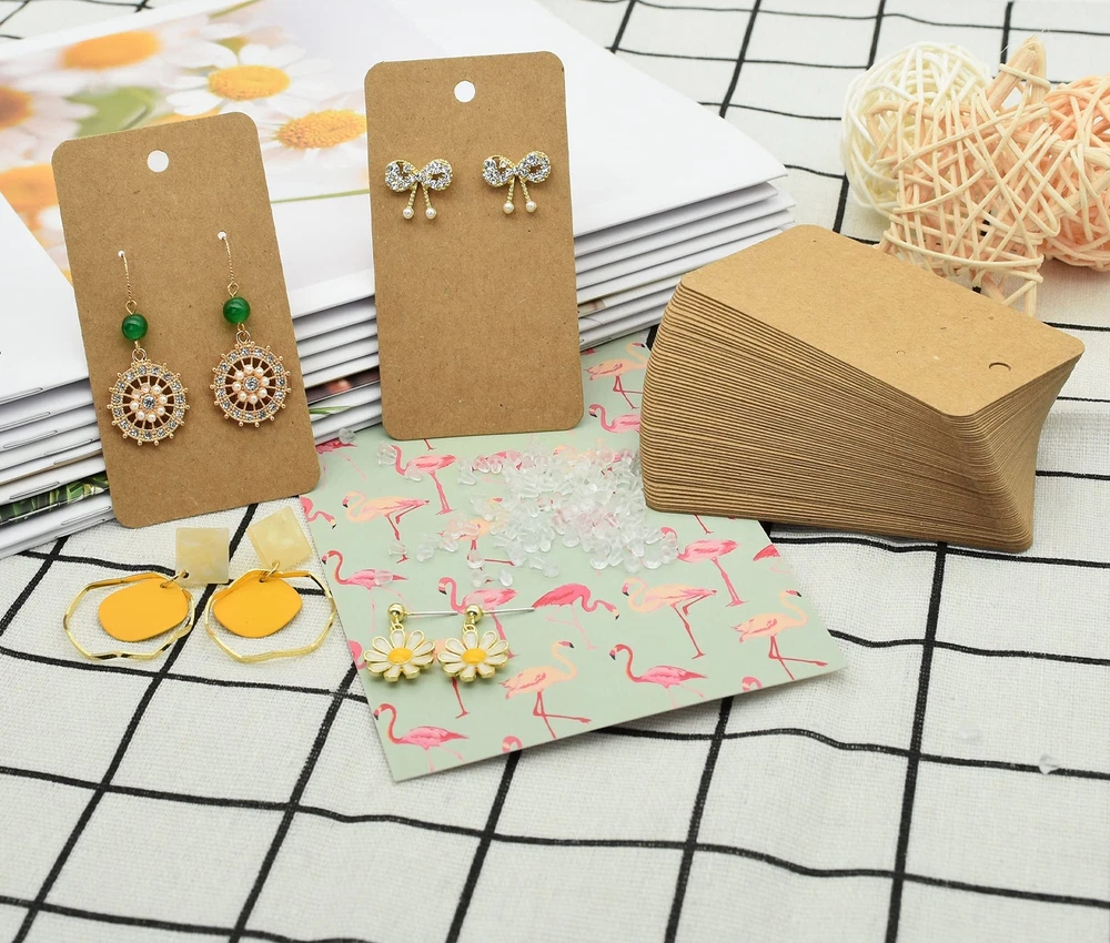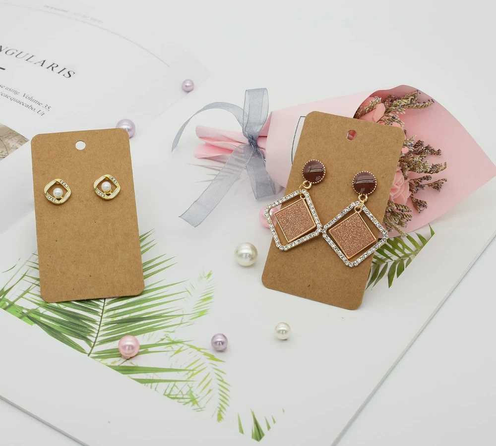 Earring Card Holder Set, 100Pcs Kraft Paper Earring Display Cards, 100 Pairs Clear Earring Backs with 100Pcs Self Adhesive Bags for Earrings Jewelry Display (Brown, 3.5" x 2") Bulk Supply: Package comes with 100pcs Kraft paper tags for DIY ear studs and earrings, 100 pairs transparent earring backs and 100pcs self seal bags for packing. You don’t buy them separately. Size: Each earring card measures approximately 3.5 x 2 inches. Perfect size for stud earrings, hoop earrings, tassel earrings and teardrop dangle earrings etc. Material: Made of solid thick Kraft paper, sturdiness, work great for displaying your earrings made to sell or organize. Easy To Use: Earring Cards comes with pre-cut holes, earrings and jewelries can be easily hung on . The blank areas allow you stamp your own logo or write your own information on such as product name, price or label etc. Wide Application: The Kraft hanging earring display cards are ideal for retail shops, trade shows, yard sales, and fairs, work great for displaying earrings or organize your jewelries. Size Information: Earring cards: 2 x 3.5 inches(5 x 9 cm) Self sealed bags: 3 x 5 inches (7.5 x 12.5 cm) Earring cards holder material: Kraft paper Color: brown Package Includes: 100 pieces brown earring display cards 100 pair earring backs 100 pieces self-adhesive bags Shipping We offer FREE shipping on all orders! We ship within Three business days of payment, usually sooner. We use a selection of shipping services such as UPS, FedEx, USPS etc. We only ship to the lower 48 states, no APO/FPO addresses or PO Boxes allowed. Local pickups and combined shipping options are not provided at this time. Return You can return a product for up to 30 days from the date you purchased it. Any product you return must be in the same condition you received it and in the original packaging. Please keep the receipt. Payment We accept payment by any of the following methods: PayPal Please pay as soon as possible after winning an auction, as that will allow us to post your item to you sooner! Feedback Customer satisfaction is very important to us. If you have any problem with your order, please contact us and we will do our best to make you satisfied. Contact Us If you have any queries, please contact us via ebay. We usually respond within 24 hours on weekdays. Please visit our eBay store to check out other items for sale! Thank you for shopping at our store.