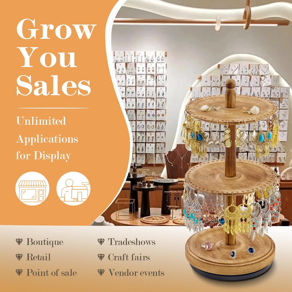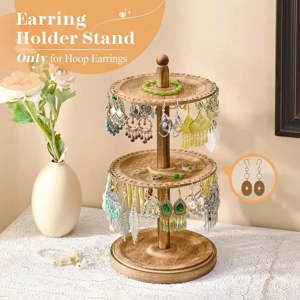 Installation tip: Use the rod with shorter screw to install on the base Elegant & Rustic Earring Holder- This earring holder organizer is made of solid wood with a carbonized brown surface, which is rustic and pastoral style. The earring organizer will be a beautiful storage stand and elegant room art decoration Rotating Earring Stand- the base of the jewelry earring holder stand can rotate 360 ° to fully display the beautiful earrings, and it is also convenient for take the earrings and customers to choose them Ideal Choice for Her: If she has many beautiful earrings but they are not organized, this earring holder organizer will be an ideal gift for her. Give it to your wife, daughter, girlfriend or mother, Valentine's Day, birthday or Christmas Stable Structure & Practical - The 2-tier earring holder tree is very unique in structure, not only beautiful but also practical, it has a large capacity to hang 102 earrings, and the structure of the tray makes the earring holder organizer not easy to tilt or overturn Easy to Assemble & Carry - No tools required, manual rotation can be installed, convenient to disassemble and carry. This provides convenience for vendors and sellers who need a portable jewelry earring holder Product Description BNING Earring Holder Organizer, Classic Rustic Decor Design Rotating Earring Holder-360 ° rotating base for easy access to earrings Elegant & Rustic Earring Holder-A beautiful storage stand and elegant room art decoration Easy to Assemble & Carry-No tools required, manual rotation can be installed Stable Structure & Practical -The structure of the tray makes the earring holder organizer not easy to tilt or overturn. PRODUCT SPECIFICATIONS Material: Wood Finish: Carbonized Brown Dimensions: 13 H × 6.3 W × 6.3 L (inches) Weight: 1.3 LB