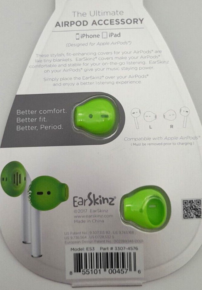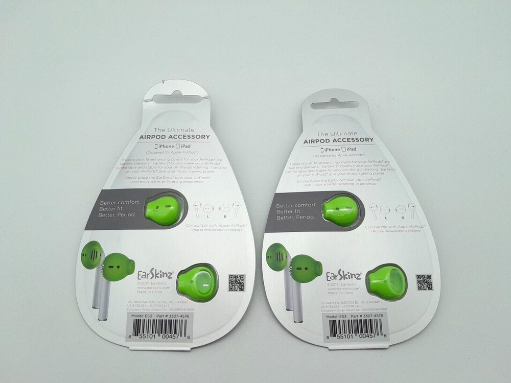 Earskinz ES3 2 Pack Green Wireless Earbud Covers for Apple AirPods iPhone New Sealed