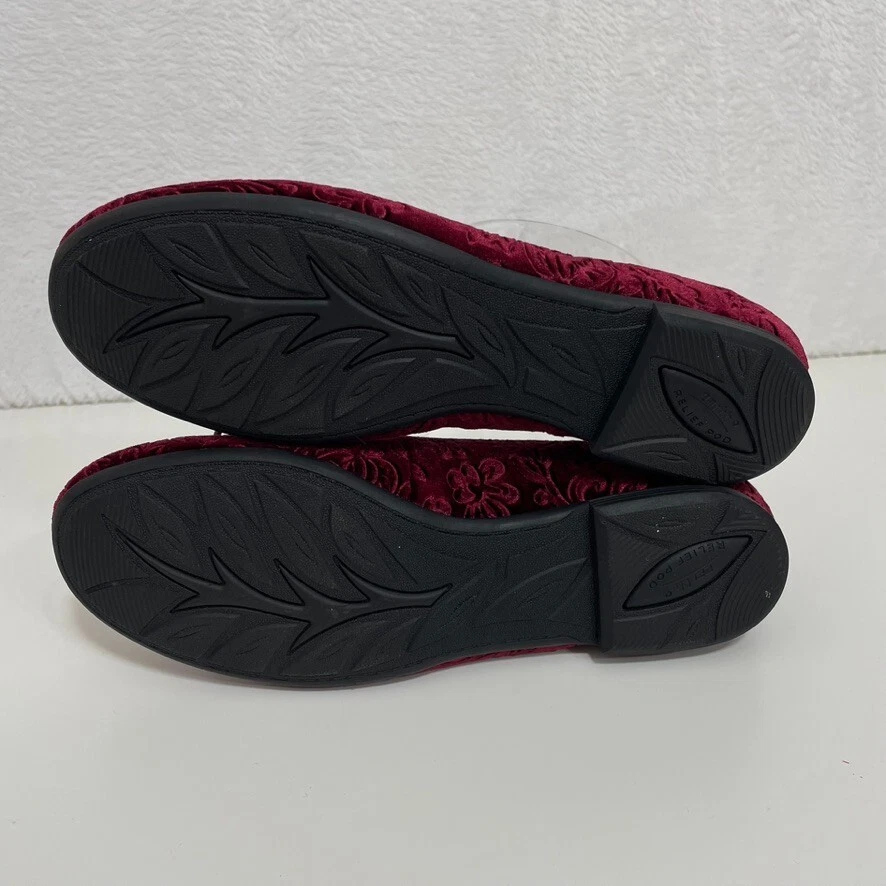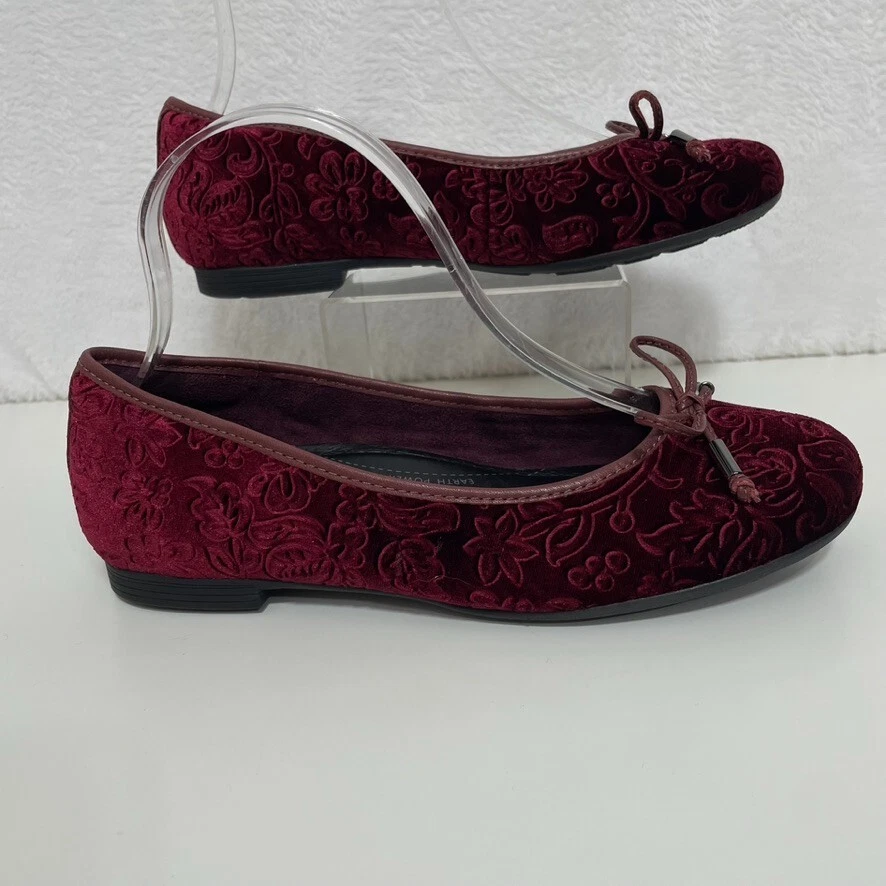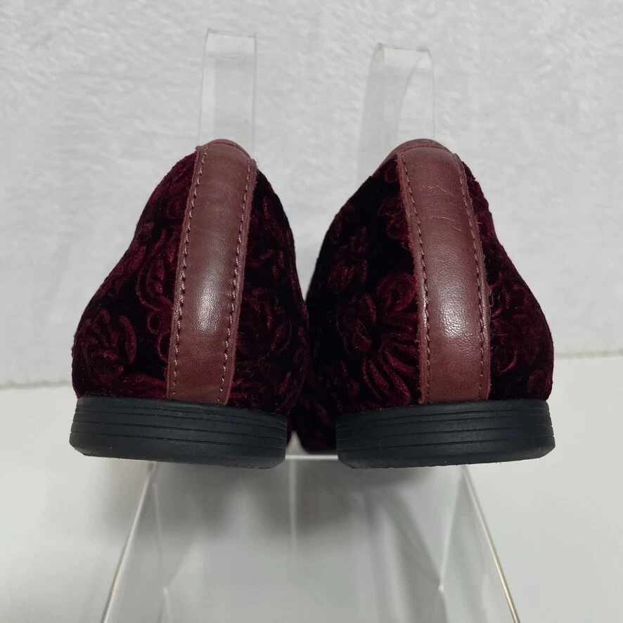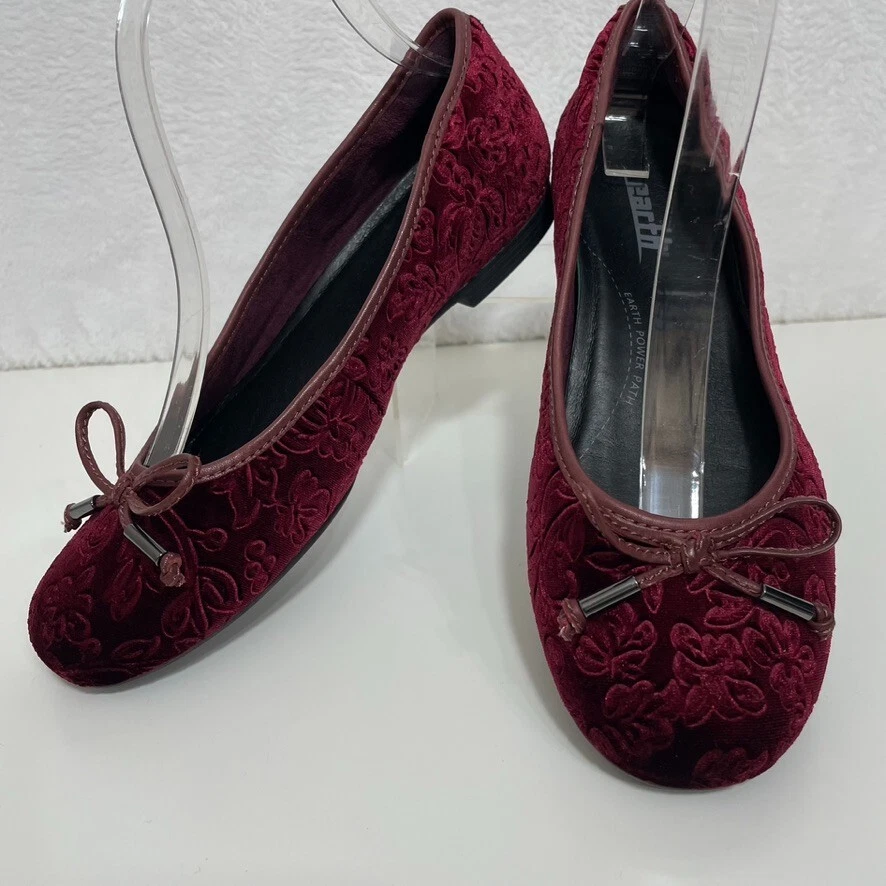 Earth Alina Burgundy Velvet Embossed Ballet Flats Dark Academia Size 7.5 CLEAN Previously owned. Very minimal wear if any. No holes, stains or rips. Clean and non smoking. Sold as seen in pictures. Please reach out with questions prior to purchase, Thank You!