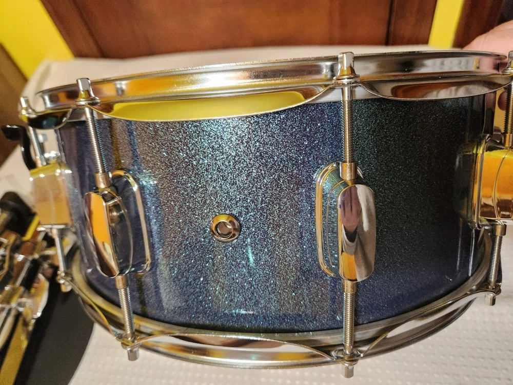 Eastar Snare Drum Set with Mute Practice Pad Student Beginner Kit, Stand, Sticks with Storage Carrying Bag Starry Blue New Open Box Great Condition however carrying case has a couple light white spots but no holes.