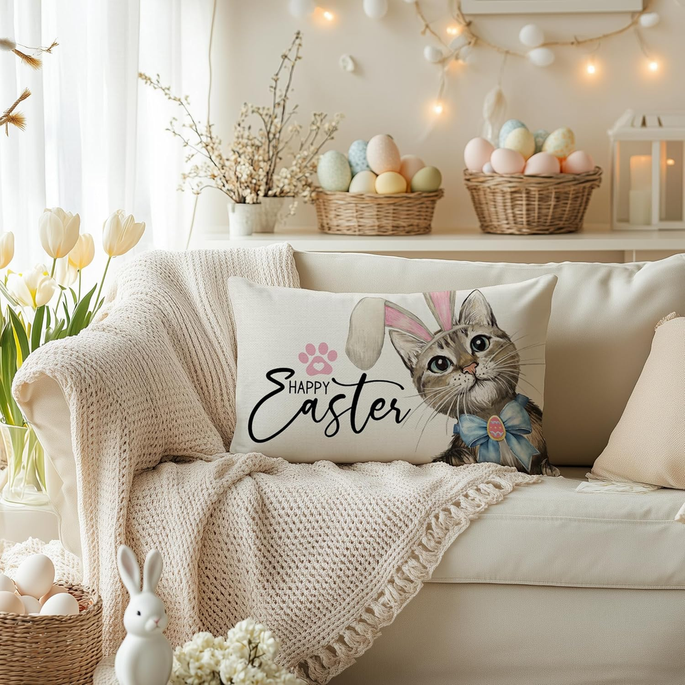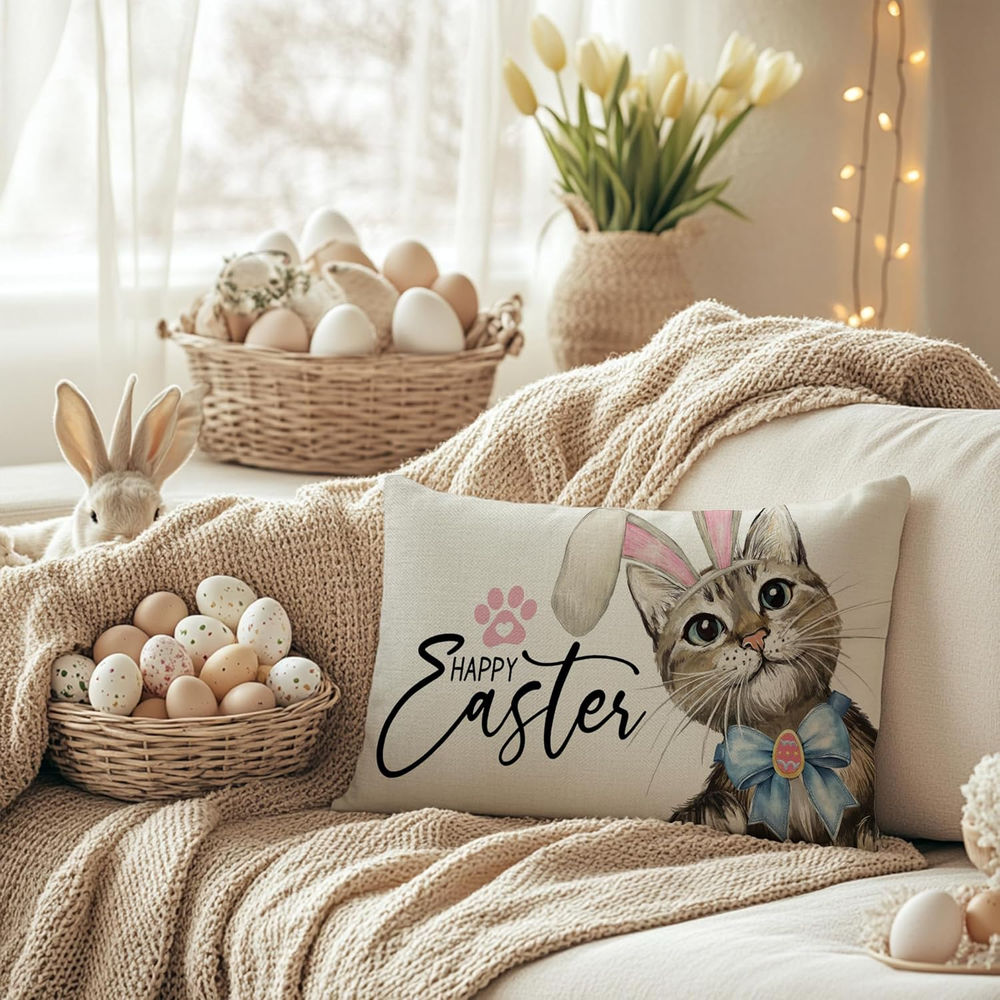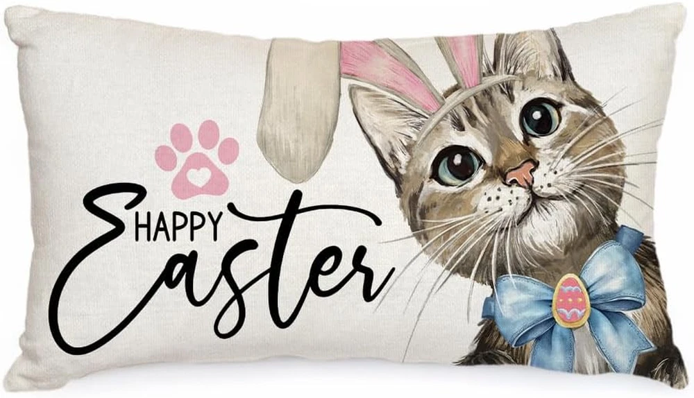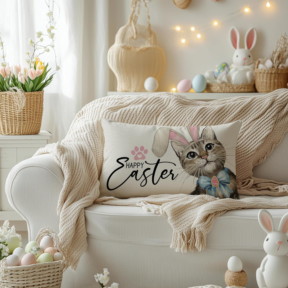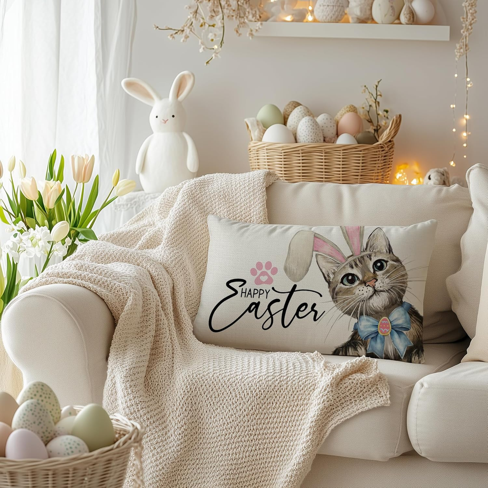 Easter 12x20 Inch Cat Rabbit Ear Decorative Pillow Cover for Holiday Party