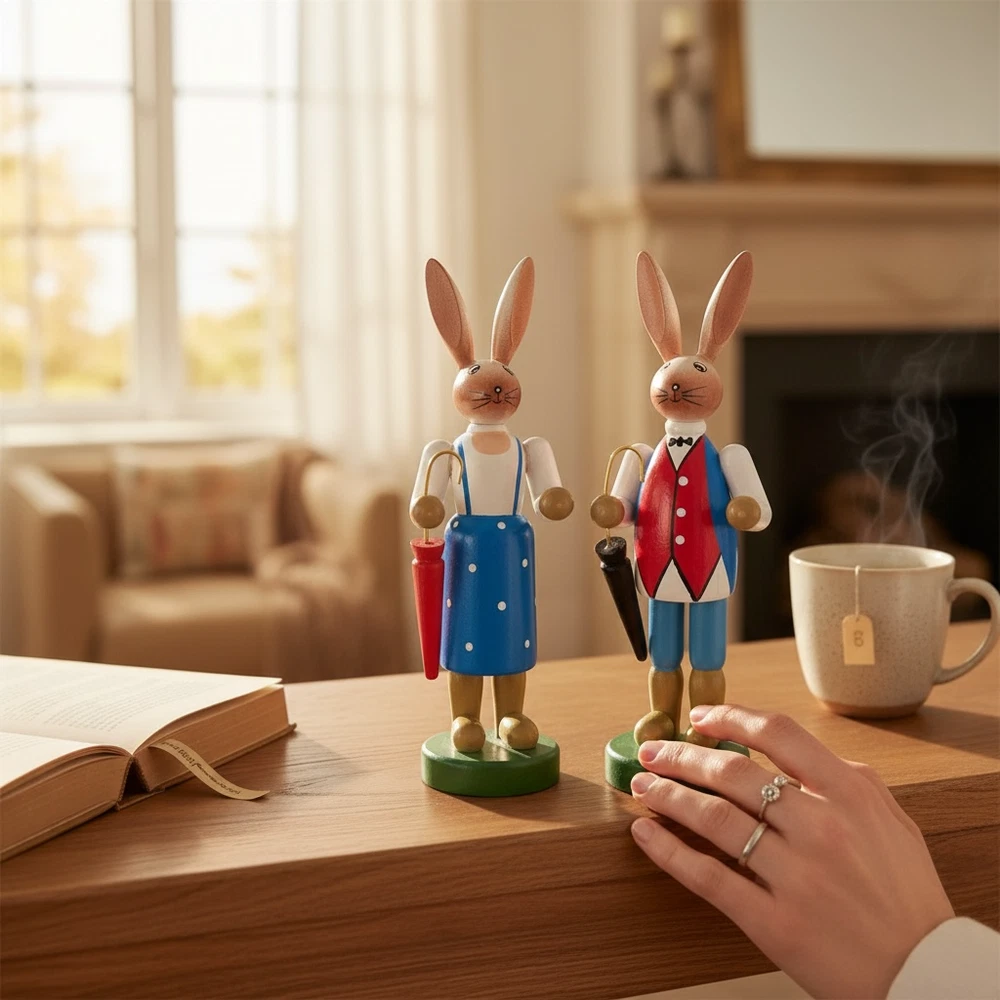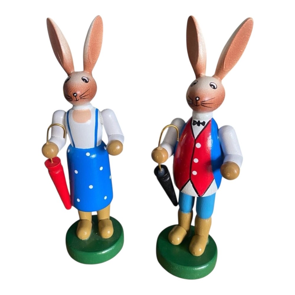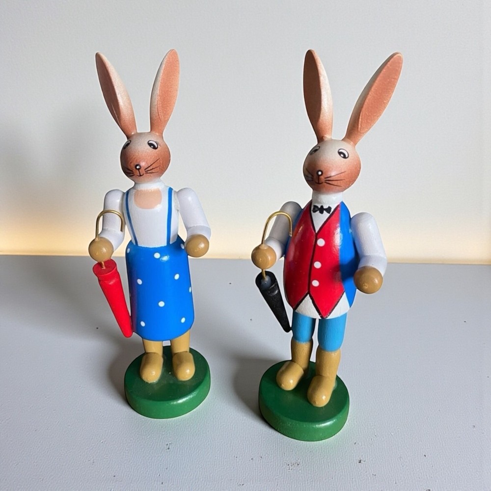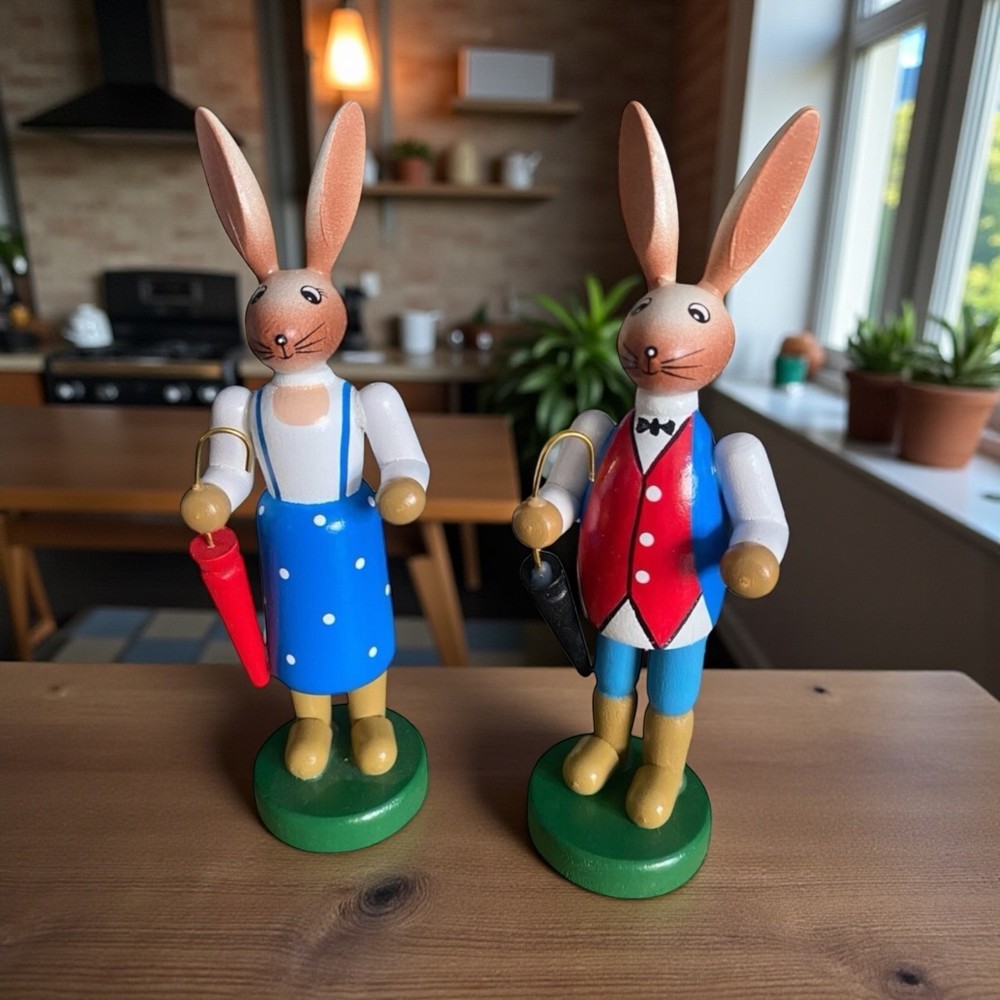 Handgefertigtes Osterhasen Paar aus Holz – 16 cm. Liebevolle Osterdeko als Set, klassisch bemalt und sofort dekorationsbereit. 🐰 Osterhasen Paar – handgefertigte Holzfiguren für Ostern Zwei Hasen, zwei Charaktere – und ganz viel Frühlingsgefühl. Dieses handgefertigte Osterhasen-Paar bringt traditionelle Osterstimmung auf Fensterbank, Tisch oder Sideboard. Mit ihren liebevoll bemalten Details und den kleinen Schirmen wirken die Figuren fast wie aus einer alten Frühlingsgeschichte – zeitlos, charmant und dekorativ. ✨ Details auf einen Blick Motiv: Osterhasen Paar (männlich & weiblich) Höhe: ca. 16 cm Material: Holz Ausführung: handgefertigt & bemalt Lieferumfang: 1 Set = 2 Figuren Ideal als klassische Osterdekoration , für Sammler oder als liebevolles Geschenk zur Frühlingszeit. Hinweis: Verkauf erfolgt als Set – nur 1 Paar verfügbar. 🌷 Mike & Kevin wünschen viel Freude beim Dekorieren und ein schönes Osterfest!