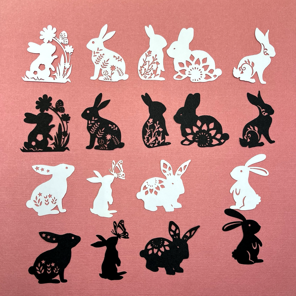 18 pieces. 9 designs. Each design has white and a black version. The bunny in the last photo measures approx. 2 inches tall. These are a thicker paper without adhesive. These are delicate. I have more paper, stickers and washi tape for sale. I do combine shipping. P lease put all the items you would like to purchase in ONE cart and then pay. I will refund you the difference in shipping after shipping label is printed. Let me know if you have any questions through eBay messaging. Thank you for stopping by!