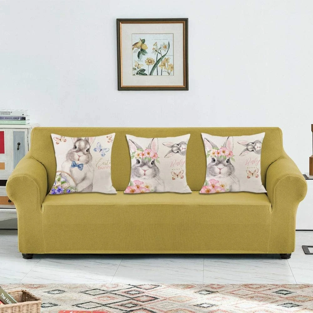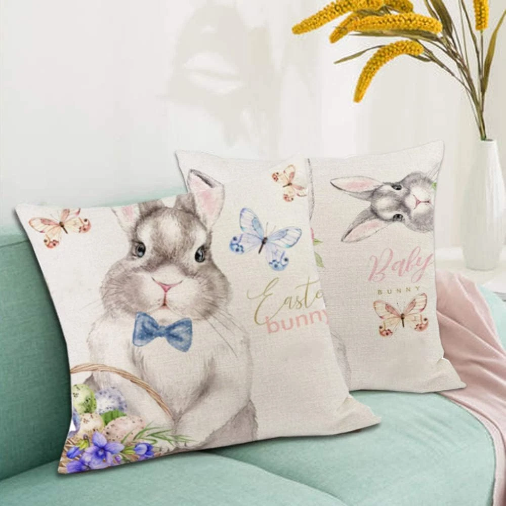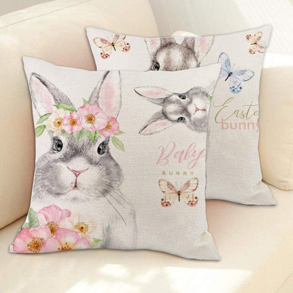 100% Polyester 【PATTERN DESIGN】: 2 Pack Easter theme design Pillow Covers Vivid Color, Pillow Covers with Easter bunny animal Will Bring You a Pleasant Mood and Warm Atmosphere, Also a Perfect Gift for Your Family and Friends.(Without Inserts). Pattern only on one side, you can DIY your favorite pattern on the other side. 【QUALITY LINEN FABRIC】: Easter bunny throw pillow cases made of thick durable linen material, with fantastic moisture absorption and wet dissipation, perfect for cushion cover or sofa throw pillow cases. As the premium comfort eco-friendly material, it offering the most restful relaxation, breathable cool touch and warm touch in winter. They are also excellent outdoor pillows covers, which can withstand the spring wind and sun. 【HOME DECOR】: Easter bunny throw pillow covers makes the pillow a perfect match in any room.The cushion cover is sure to addvigour, warmth, texture and depth to your home or car. Easter pillowcase one of the most cost-effective home decoration you buy, perfect Easter decor pillow covers for foliving room, kitchen, bed, sofa,couch,chair, porch, car, toss, patio, bedroom, office, etc. 【SIZE OF THROW PILLOW COVER】: Our Easter Cute Bunny Cushion Cover 18 x 18 inches/45 x 45cm, corner to corner without insert filled; as a result of manual production, sewing and cutting will inevitably occur a little deviation, please allow 2-3 centimeters; the pillow cover has an invisible zipper in one side, it more elegant and help you easily remove the filling. 【WASHING TIPS】: Our Easter decorative pillow case fade resistant and stain resistant, so our Easter square throw pillow covers are easy to clean up.Washed at 30 degrees water with solid, non-fade colors, they will withstand countless wash cycles, tumble dry low, max ironing temperature 60℃ and it'll look new! SIZE OF THROW PILLOW COVER: 45 x 45cm/18 x 18 inches, corner to corner without insert filled, as a result of manual production, sewing and cutting will inevitably occur a little deviation, please allow 2-3 centimeters; the pillow cover has an invisible zipper in one side. PATTERN DESIGN: Easter style QUALITY LINEN FABRIC: Made of thick durable linen blend material,With fantastic moisture absorption and wet dissipation, perfect for cushion cover or sofa throw pillow cases. WASHING TIPS : Our decorative Easter style pillow caseis fade resistant and stain resistant,so our square throw pillow covers are easy to clean up.Washed at 30 degrees water with solid, non-fade colors, they will withstand countless wash cycles, tumble dry low, max ironing temperature 60℃ and it'll look new! Package includes: 2 Pcs Easter style Pillow Cover