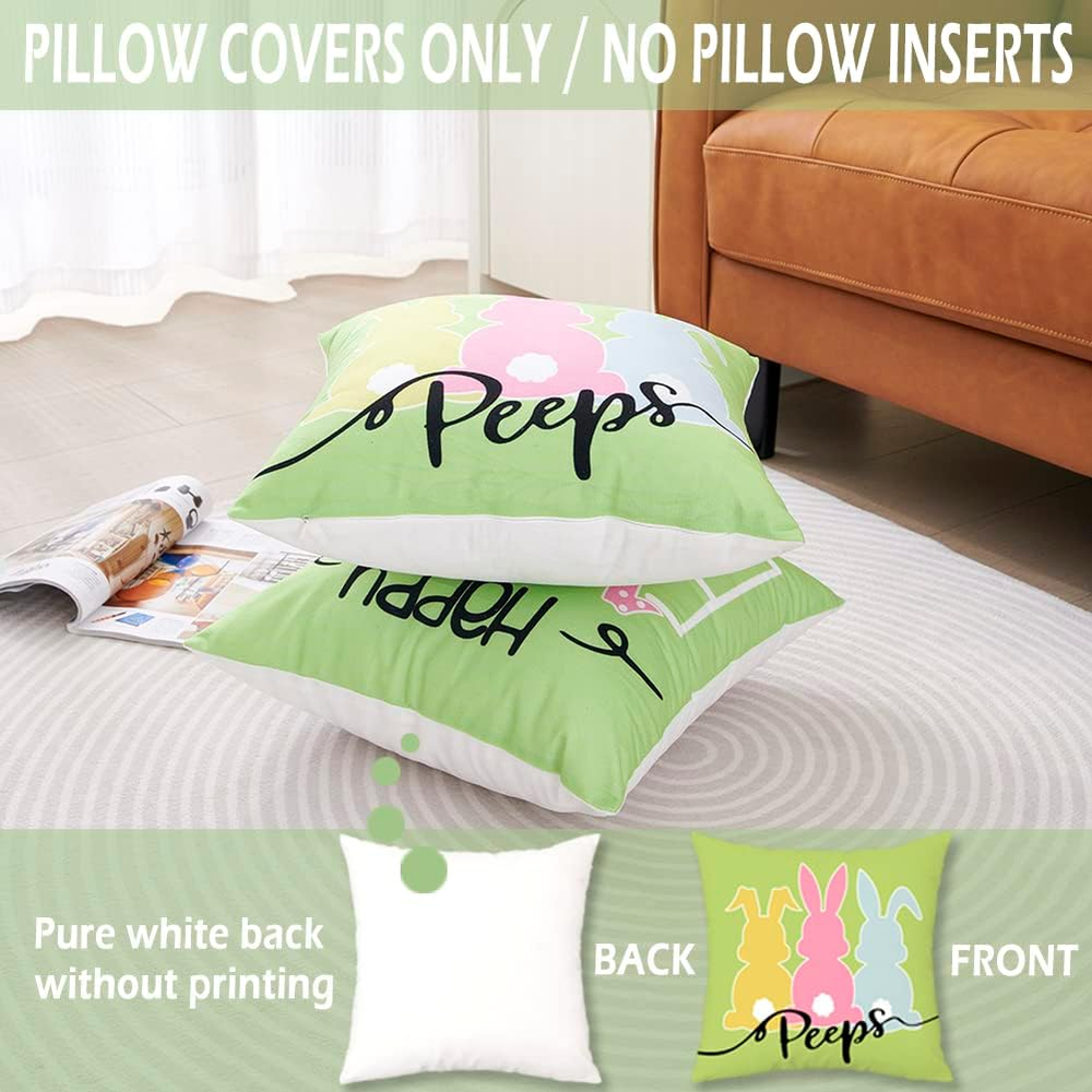 Store New Arrivals Add to Favorite View Feedback Contact Fast deliveries to the customer's home Quality customer service John Make the customers happy! Easter Bunny Throw Pillow Covers 18X18 Set of 2 Happy Easter Bunny Decorations Peeps Decor for Home Couch Sofa and Outdoor Porch Description Polyester 【Easter Bunny Decorations】 Package included: Set of 2 Easter Peeps Decorative Throw Pillow Covers 18x18 Inch (WITHOUT THE PILLOW INSERT). TIPS: Pattern is only on the front and no printing on the back. Back and background is PURE WHITE color. Since it is hand cut and sewn, please allow 0.5 inch size deviation. 【Happy Easter & Peeps Unique Cute Design】Replace your old pillows without throwing away the expensive and comfortable down pillow inserts, these farmhouse decorative easter rabbit throw pillow covers are gonna to bring holiday theme to your home. Suitable for indoor or outdoor use, such as sofa, porch, couch, office, bedroom etc. These bright color pillow covers are not waterproof! 【Easter Bunny Pillow Covers 18x18 Set of 2】Made of white soft polyester fabric, extra soft, in addition to being used as a decorative seasonal holiday pillowcase, it can also be used for bedding. Relatively thick, no pungent smell and the pattern will never fade. Hand Washing or Machine Wash Cold Separately, Gently Cycle Only, No Bleach, Tumble Dry, Do Not Iron and it'll look brand new. 【Vibrant & Bold Colors】 These bright and colorful easter peeps throw pillow covers are unexpectedly beautiful and will let you get many compliments from friends and relatives. Please fold the pillow insert in half and insert it into the pillowcase. (PILLOW INSERT IS NOT INCLUDED.) Hidden zipper at the bottom works smoothly with fine stitches. 【Easter Gift】 A good gift idea for New Home House Warming or Easter Holiday Party Decorations. A good gift idea for New Home House Warming or Easter Holiday Party Decorations. Great addition for cheerful Spring decor Our happy easter throw pillow covers can help you to refresh your room, easily matches with other holiday seasonal home decor. SIZE 12x20/18x18/20x20 inches, Due to manual cutting and sewing, please allow some deviation in size. WASHING GUIDANCE Hand washing or Machine Wash Cold Separately, Gently Cycle Only, No Bleach, Tumble Dry, Do Not Iron. TIPS 1. Cushion cover ONLY (NO Insert) No Filler. 2. Hidden zipper closure, one-sided pattern printed, back and background is solid white. 3. Please fold the pillow core in half and insert it slowly into farmhouse pillow cover when replacing. APPLICATION Suitable for indoor & outdoor use, such as sofa, car, couch, office, bedroom etc. Good To Know Before You Buy: 1. The real color of the item may be slightly different from the pictures shown on website caused by many factors such as brightness of your monitor and light brightness. 2.All the measurement are handmade, there may be 0.5-0.8 inch deviation. Package Included: Set of 2 Bright Color Cute Happy Easter and Peeps Pillow Covers Item model number Easter Pillow Covers Style Modern Number of Items 2 Pattern Print Country of Origin China Theme Holiday Number of Pieces 2 Unit Count 2.0 Count Room Type Office, Bedroom Batteries required No Product Dimensions 18"L x 18"W Material Polyester Shape Square Closure Type Zipper Item Weight 5.9 ounces Occasion Holiday Special Feature Fade Resistant Color Happy Easter and Peeps Pillow Type Throw Pillow Recommended Uses For Product Office, Car, Outdoors, Home Fabric Type Polyester Product Care Instructions Hand Washing or Machine Wash Cold Separately, Gently Cycle Only, No Bleach, Tumble Dry, Do Not Iron and it'll look brand new. Size 18" x 18" (Pack of 2) ABOUT US We offer the best prices around on high quality products. Our E-store includes media such as books, movies, music and games while offering electronics, toys, sporting apparel, clothing, tools, general home, garden items and more. SHIPPING We are always working hard to ensure your package arrives as soon as possible. Please understand that some factors like weather, high postal traffic, and the performance of shipping companies are outside of our control. We offer free shipping to the lower 48 states and ship within 2 business days of payment, usually sooner. We do not accept P.O. Boxes. Please provide a physical address. For shipping outside of the continental USA, we only use eBay's Global Shipping Program. The item is shipped to KY and then sent to the rest of the world. International customers are responsible for all duties and taxes. Continue to 'check out' to calculate costs for shipping the item to your country. Messages regarding eBay's Global Shipping Program MUST be directed at eBay EXCLUSIVELY. RETURNS We offer a 30-Day Return Policy on items in which you are not completely satisfied with. You have the option of a full-refund or an exchange of the item. No returns are available on items shipped outside of the USA PAYMENT We accept PayPal. CONTACT US This page content is yet to come Please ad us to your favorite seller and visit again later Thank You CUSTOMER SATISFACTION We try our very best to make sure every customer is completely satisfied. If there's a problem, message us! We're happy to help. WE ACCEPT