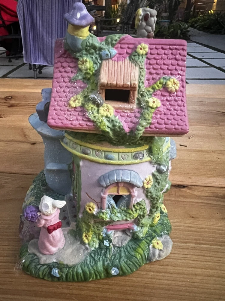Easter Bunny Rabbit Lighted Ceramic Village Flower Store Bunnies Rabbits Glitter