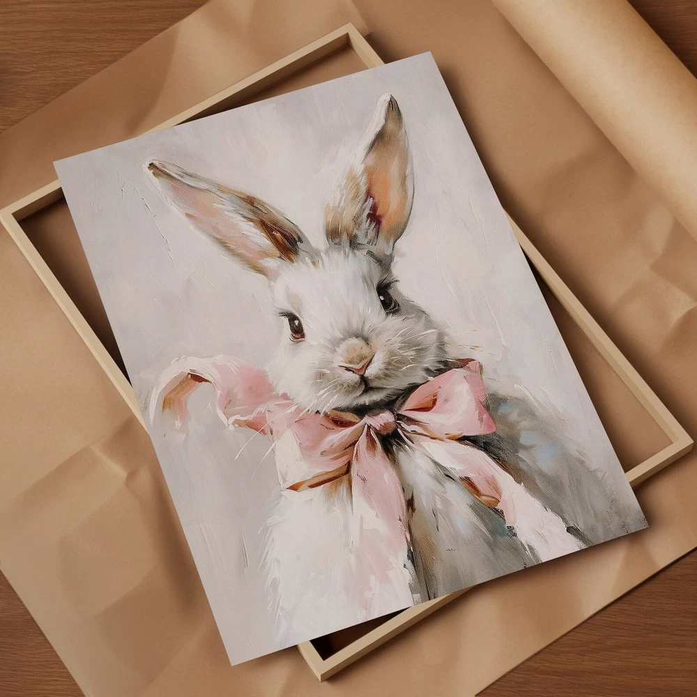 Easter Bunny Rabbit With Pink Bow Nursery Decor Grandmillenial Prints Grandma Chic Poster Trendy Coquette College Room Spring Aesthetic Material: Premium luster photo paper Print type: Inkjet printing One side printed + The finish provides the highest possible resolution and color saturation + Lasts up to 200 years in color and 400 years in black-and-white + Printed on high-quality resin-coated photo base paper medium + Posters can be hung with double-sided tape, tacks, or framed + Hand washing with a gentle cry cloth is recommended for extended durability I will hand select the best choice of paper for your chosen design to ensure top quality results for a beautiful, bright and luxurious print. All prints are sealed in cellophane slips for protection during transportation, and are shipped in a protective cardboard envelope.