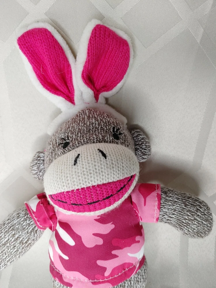 Easter Bunny Sock Monkey Plush Toys Pink Camo EUC Dan Dee 12" EUC. Condition is "Used". Shipped with USPS First Class.