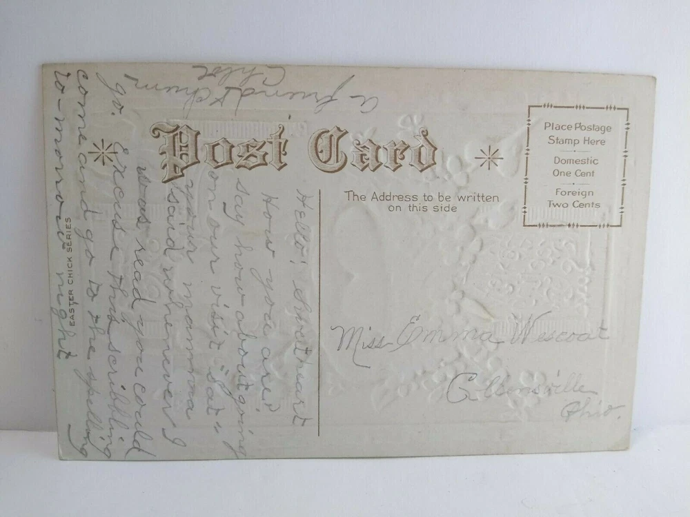Antique vintage original Easter postcard. Has corner creases and age wear. Writing on back. Non posted. Stock #eas65. Additional original vintage holiday post cards are in our store. Combine and save. SHIPPING Bundle and save by using cart and making single payment. International buyers are responsible for any import fees/taxes. ABOUT US Seller of vintage ephemera, collectibles, retro gifts, advertising, artwork, vinyl records, pinball and arcade game flyers and parts, Mad magazines, antique Halloween & holiday postcards, Christmas items, super hero memorabilia, horror themed art, fun stuff. Bundle and save by using the cart.