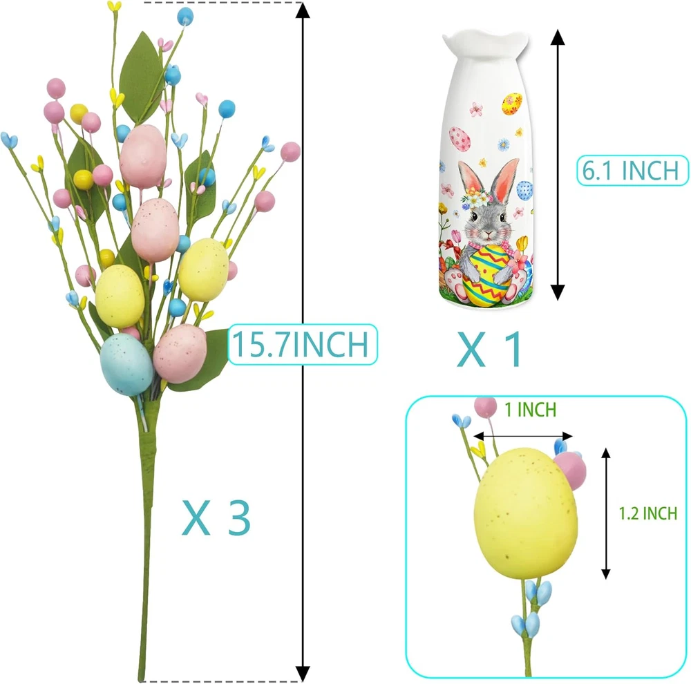 Store New Arrivals Add to Favorite View Feedback Contact Fast deliveries to the customer's home Quality customer service John Make the customers happy! Easter Decor, Easter Artificial Flowers 3 PCS with Vase, Bunny Table Decorations, Tabletop Centerpiece for Home, Living Room, Dining Table, Eggs Flowers Gifts for Women Description EASTER ARTIFICIAL FLOWERS - You will receive easter flowers with eggs berry*3 and bunny ceramic vase*1. This decoration will add vibrate color to your living room or dining room EASTER DECORATIONS - The easter eggs on the artificial flowers will bring you wonderful easter atmosphere when decorating your home, office, living room, kitchen, dining room, bedroom, table centerpiece and mantle HIGH-QUALITY - The picks are made of duarble foam for long-lasting keepsake. It can always be a beautiful decoraiton in various occassions EASY TO CARE - The aritificial flowers need nothing to maintain blossom. It will save your time from taking care of real flowers. If there is dust or other staining, just wipe it with a soft cloth EASTER GIFTS - The easter flowers with vase are great easter gifts for kids and easter gifts for women Product Description Item model number bunny Plant or Animal Product Type eggs Color Bunny Egg Product Dimensions 2.2"D x 2.2"W x 6.3"H Material Ceramic Country of Origin China Item Weight 1.08 pounds Shape cylinder Package Information Vase Occasion Easter Specific Uses For Product Home Decor ABOUT US We offer the best prices around on high quality products. Our E-store includes media such as books, movies, music and games while offering electronics, toys, sporting apparel, clothing, tools, general home, garden items and more. SHIPPING We are always working hard to ensure your package arrives as soon as possible. Please understand that some factors like weather, high postal traffic, and the performance of shipping companies are outside of our control. We offer free shipping to the lower 48 states and ship within 2 business days of payment, usually sooner. We do not accept P.O. Boxes. Please provide a physical address. For shipping outside of the continental USA, we only use eBay's Global Shipping Program. The item is shipped to KY and then sent to the rest of the world. International customers are responsible for all duties and taxes. Continue to 'check out' to calculate costs for shipping the item to your country. Messages regarding eBay's Global Shipping Program MUST be directed at eBay EXCLUSIVELY. RETURNS We offer a 30-Day Return Policy on items in which you are not completely satisfied with. You have the option of a full-refund or an exchange of the item. No returns are available on items shipped outside of the USA PAYMENT We accept PayPal. CONTACT US This page content is yet to come Please ad us to your favorite seller and visit again later Thank You CUSTOMER SATISFACTION We try our very best to make sure every customer is completely satisfied. If there's a problem, message us! We're happy to help. WE ACCEPT