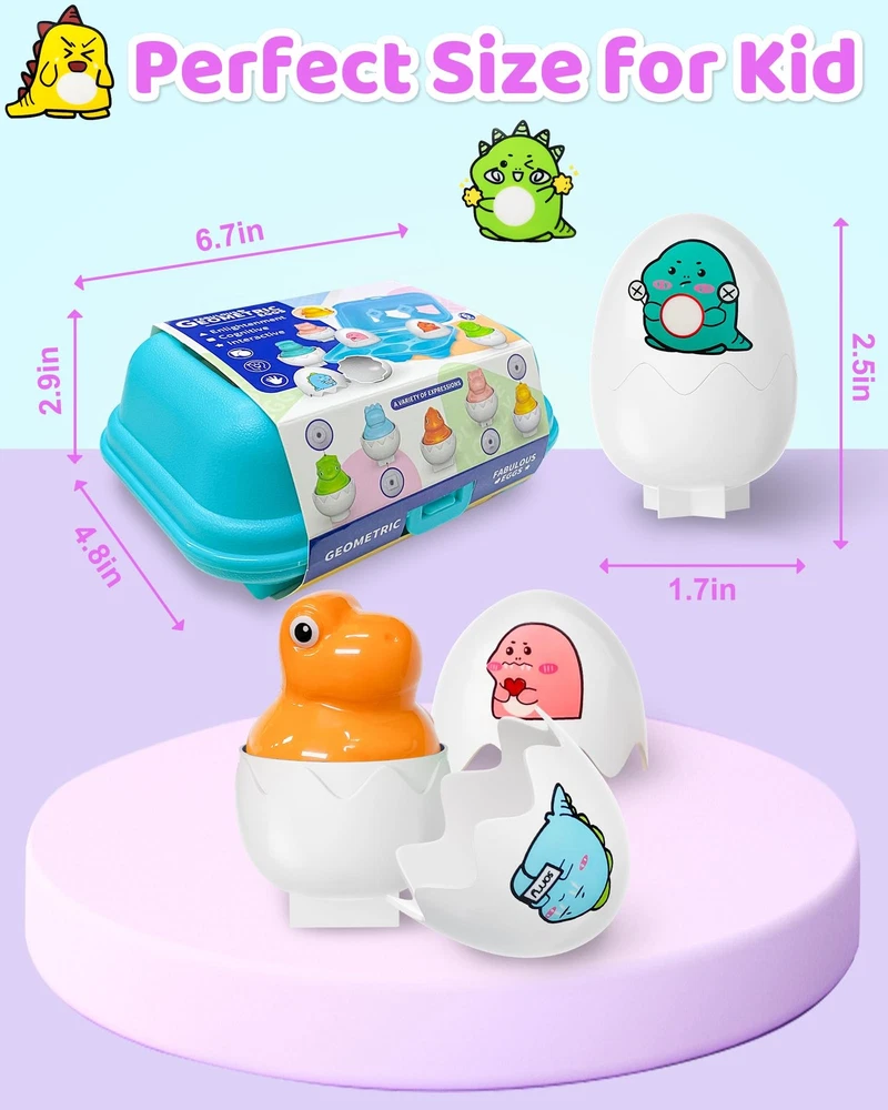 If you are looking for educational toys as a Christmas or birthday gift for a 1,2,3-year-old boy or girl, this sensory Montessori toys for toddlers 1-3 is your perfect choice. ✨[Montessori Toy for 1 2 3 Year Old] : Dinosaur matching eggs contain 6 colored eggs with 6 different shapes at the bottom, which requires our children to place the eggs into their own special base by recognizing the shapes and colors. It is designed to develop kids mind, exercise fine motor skills, and improve hand-eye coordination and problem solving. With a total of 6 different colored dinosaurs, they chirp when you gently press their heads, so this is a fun way to develop your child's senses and motor skills. ✨[Learning through play]: Easter Egg toy is a classic educational Montessori toy. Because each dinosaur has a different color, such as red, blue, orange, green, and yellow, our kids can match each dinosaur with an eggshell by recognizing the color. In addition, the 6 matching egg bases are of different shapes and perfectly fit the blue tray. When sorting eggs, toddlers need to balance their core muscles and move their hands carefully to figure out which shape fits where. This activity will help your kids control his body movements. ✨[High Quality materials]: Color and shape classification Easter Egg toys for 1-3 years old children made of high-quality plastic materials, no irritating smell, parents can rest assured that children play. The smooth surface and edges of the eggshell are suitable for small hands to grasp. ✨[1 2 3 Year Old Girl Boy Easter Birthday Gift] : Learning Egg Toys makes a great gift/Easter basket stuffers for ages 1-3. It is a great gift for Easter, Christmas or birthday parties etc. Surprise Easter egg toys for preschoolers make great Easter basket stuffing. ✨[Away from /Pad Screen]: Provides screen-free activity to develop kids creativity and protect eyesight.