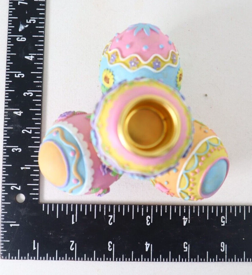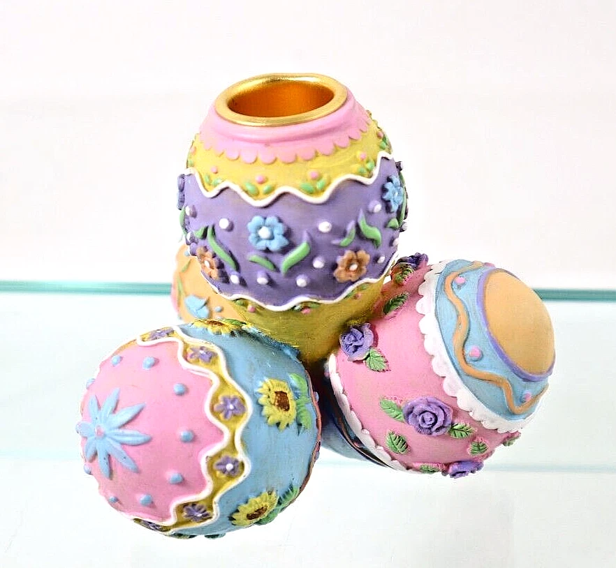 This Easter Eggs Shape Candle Holder Pastel Colorful Resin 4" Pink Blue Yellow Purple is in very good condition. See photos. Size: 4" tall X 5" across Weight 1 lb. 4 Oz. You are invited to visit our eBay store at: www.eBay.com/str/thewayforwardtreasures. Your satisfaction is our first priority. We will ship the item within 3 business days of receiving payment. If you are not satisfied with the product, you may return it. The cost of return shipping will be as follows: If the return is because we did something wrong, then we will pay for the return shipping. However, If the return is because you have changed your mind and no longer want the item, then we will ask you to pay the return shipping. Returns will be allowed for 30 days after shipment. Our quoted shipping rates apply to the continental US only. Hawaii, Alaska, other US territories and overseas must be requoted. You must agree to the new rate before shipment.