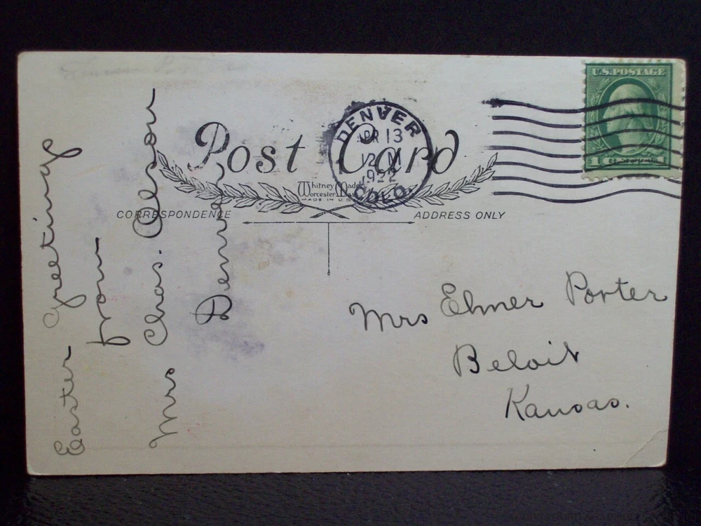 Easter Greeting Postcard Girl Spring Flower Garden Bunny Rabbits Lily Daffodils DESCRIPTION: This listing is for the preowned Old Vintage Little Girl in Spring Flower Garden Bunny Rabbits Lily Whitney Easter Postcard pictured only. This postcard features a view of a cute little girl in a bulb garden with spring flowers, lilies, daffodils, and hyacinths. She is chasing butterflies while brown bunny rabbits look around. MESSAGE: Yes CAPTION: Easter Greetings PUBLISHER: Whitney Made STAMP: Yes CANCEL: Denver Colo 1922 Review the photos closely as they are a necessary essential part of the description. Please take in consideration that I sell preowned antique and collectible items that are rarely pristine. This postcard may show some form of use with wear due to age, it is as found. The corners are lightly bumped, one with a small crease. This postcard is an almond color with spots and cancel marks on the front. Due to variations between computers, color may vary. If you have any questions or concerns, please a message me through eBay. See my other listings for more great items! All shipments start at First Class Package Rate. This rate is higher than First Class Envelope but it allows me to use extra packing material and safely ship your item quickly. Items that are 250.00 or more will require signature confirmation. Free shipping via USPS First Class Package when shipped within the USA. Delivery time is a estimate that does not consider weather delays, holidays, or unexpected events. International purchasers it is your responsibility to be aware of any import or customs fees your country may apply to your incoming packages. I will not falsify information on the customs forms. First Class Package International rate can be expensive. Please click on to the shipping and payment tab to use the international postage calculator. If you wish your item to be shipped Registered Mail, this will be an additional charge added to the postage rate. Thank you for looking! inkfrog terapeak