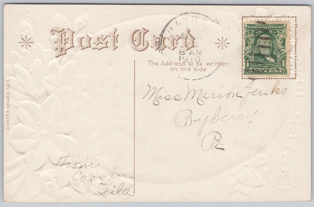 Era: Divided Back (1907-1915) Original/Licensed Reprint: Original Type: Printed (Lithograph) Subject: Rabbit Size: Standard (5.5 x 3.5 in) Unit of Sale: Single Unit Seller Notes: “Border and corners are worn. Very Fine VF condition.” Occasion: Easter Theme: Animals, Greetings Features: Divided Back, Embossed, Stamp Postage Condition: Posted