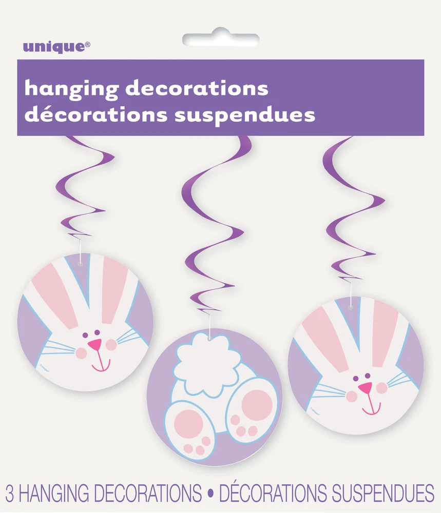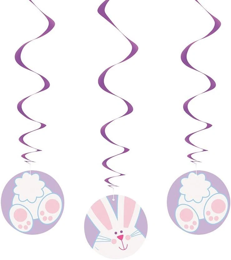 Easter Party Decorations Bunny Hanging Swirls Decoration with Cutout 66cm Long Easter Party Decorations Bunny hanging swirl decorations 3 x hanging decorations shiny foil swirls which extend to approx 26 inches / 66 cm long with a cheerful Easter Bunny cutout decoration at the bottom of each if your order is urgent, please let me know FAST POSTAGE - usually same or next day Powered by
