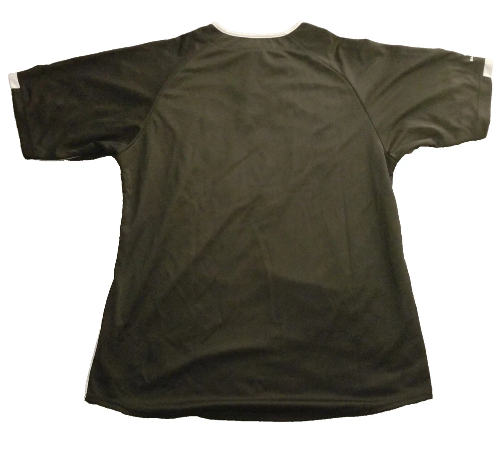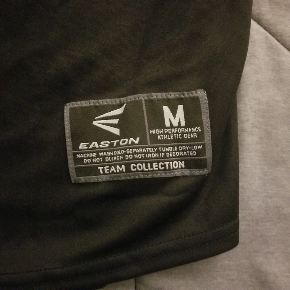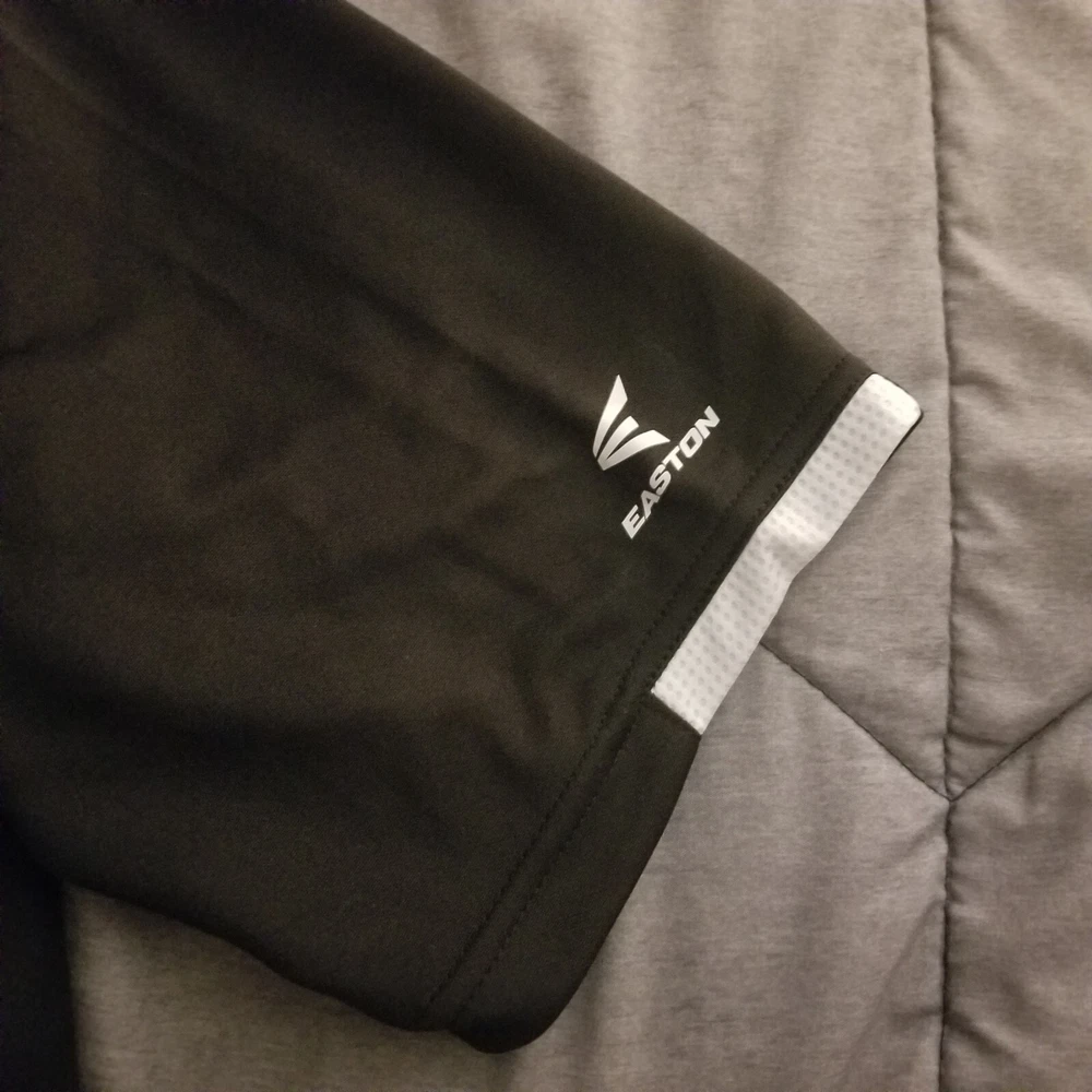 This Easton jersey is the perfect addition to any high-performance athletic gear collection. Made of 100% polyester jersey fabric, it is lightweight, breathable, and easy to care for with its medium wash. The classic/fitted short sleeves and button-down collar make it suitable for both casual and competitive activities, such as baseball and soccer. Featuring a solid black & white color with an Easton logo accent, this men's medium jersey has a button closure and measures 28 inches in length. Whether you're playing in the summer, fall, or spring seasons, this Easton Team Collection jersey is sure to provide comfort and style.