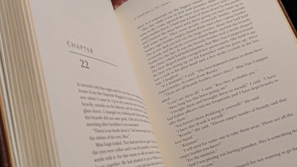 This Easton Press edition of *A Farewell to Arms* is absolutely breathtaking! The rich leather binding, gilded edges, and satin ribbon marker make it feel like a true treasure. Hemingway's classic novel shines even brighter in this collector’s edition—perfect for any bookshelf. The craftsmanship is impeccable, and the excellent condition proves it’s been cherished. A must-have for literature lovers and collectors!