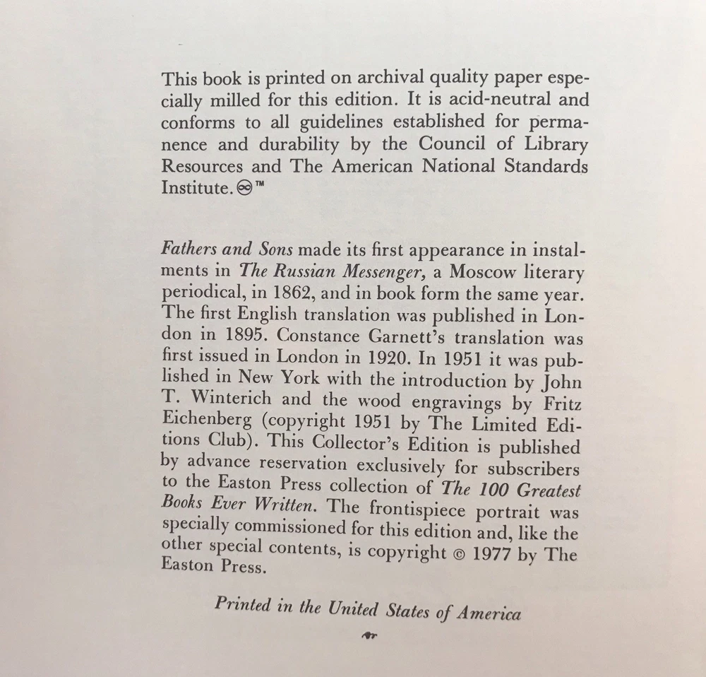 Easton Press Fathers and Sons by Ivan Turgenev 100 Greatest Series Leather 1977 Excellent condition. Some minor signs of use. Mostly just on display. Please see all pictures for condition details.
