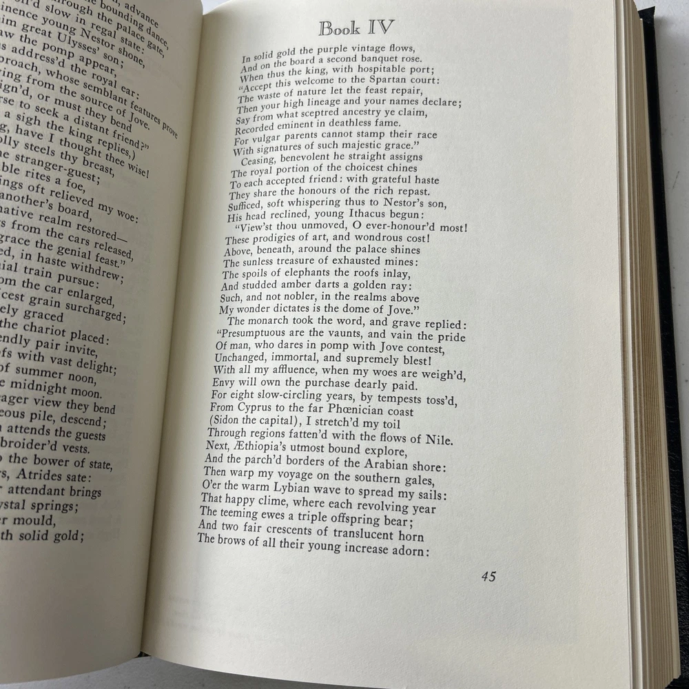 The Odyssey of Homer by Easton Press is a beautifully crafted leather-bound collector's edition book. This classic piece of literature, written by the renowned author Homer, is in English language and is a valuable addition to any book collection. Published in the United States, this original edition features elegant gold accents and is a perfect choice for literature and fiction enthusiasts.