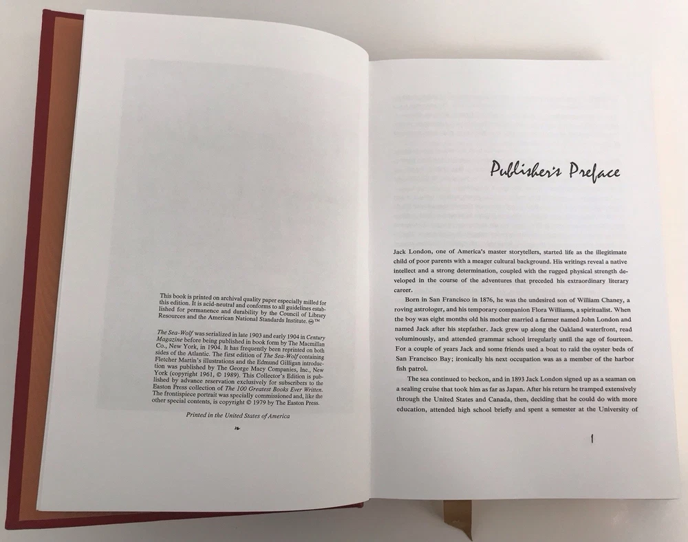 Easton Press The Sea-Wolf by Jack London 100 Greatest Series Leather Book Excellent condition. Some minor signs of use. Mostly just on display. Please see pictures for condition details.