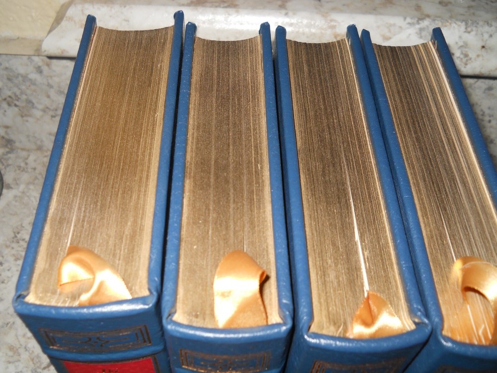 Delve into the rich tapestry of British heritage with the Easton Press edition of Winston S. Churchill's "A History of the English-Speaking Peoples." This set comprises four volumes that offer an insightful exploration of historical events and the evolution of English culture. Each book is bound in elegant leather, giving it a timeless appeal that's perfect for collectors and history enthusiasts alike. Crafted with care, the set is a testament to Churchill's renowned literary prowess and is a must-have for those who appreciate historical topics. Published by Easton Press, the books are printed in English and are a striking addition to any library. The intricate detail in the binding and the significance of the content make this set a remarkable find for anyone interested in the subject.