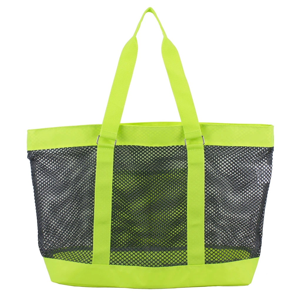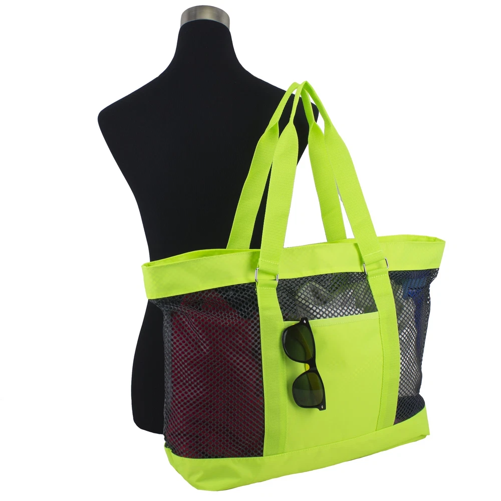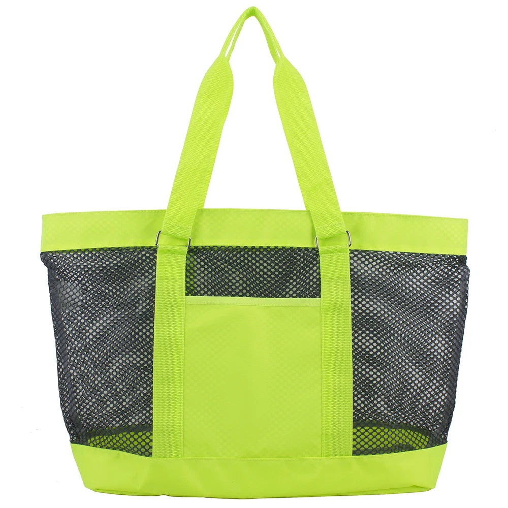 Eastsport Mesh Tote Beach Bag in Neon Yellow/Indigo