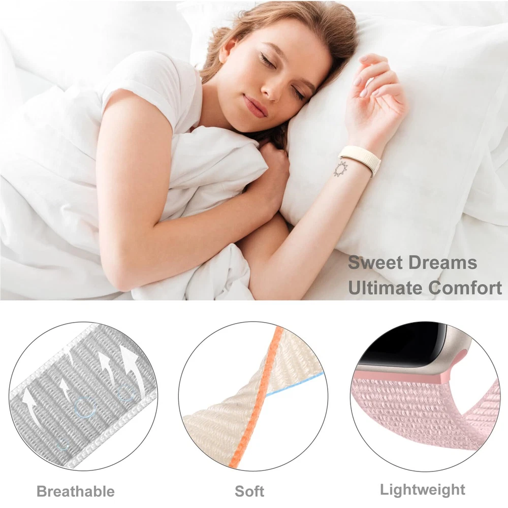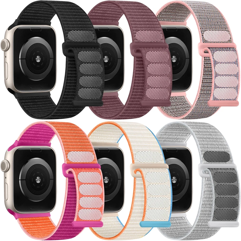 Description Compatible Models: - Compatible with Apple Watch Series 10 (42mm / 46mm); - Compatible with Apple Watch Series 9 (41 mm / 45 mm); - Compatible with Apple Watch Ultra 1 / Ultra 2 (49 mm); - Compatible with Apple Watch Series 8 (41 mm / 45 mm); - Compatible with Apple Watch SE (40 mm / 44 mm); - Compatible with Apple Watch Series 7 (41 mm / 45 mm); - Compatible with Apple Watch Series 6 (40 mm / 44 mm); - Compatible with Apple Watch Series 5 (40 mm / 44 mm); - Compatible with Apple Watch Series 4 (40 mm / 44 mm); - Compatible with Apple Watch Series 3 (38 mm / 42 mm); - Compatible with Apple Watch Series 2 (38 mm / 42 mm); - Compatible with Apple Watch Series 1 (38 mm / 42 mm); Features: Versatile Pack of 6 Bands Includes six bands in trendy colors like pink, black, starlight, white, and more, allowing you to match any outfit, mood, or activity. Featuring a mix of dressy, cute, boho, and sport charms for any occasion. Easy On and Off Designed for convenience, these iWatch bands feature a hook-and-loop fastener for quick and effortless wearing and removal. Say goodbye to struggling with traditional buckles. Comfortable & Soft Crafted from soft, lightweight, and breathable braided nylon, these bands offer superior comfort and durability. Perfect for everyday activities, intense workouts, hiking, traveling, relaxing at home, or enjoying a comfortable night's sleep. Quality Assurance & Hassle-Free Warranty Easuny ensures top-quality smartwatch accessories with a worry-free 180-day warranty. Each band undergoes rigorous inspection to ensure superior clarity, comfort, and luxury. Your satisfaction is our top priority.