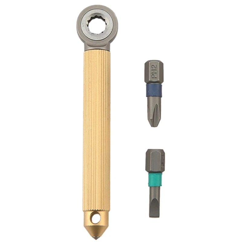 Features: Our multifunctional screwdriver tool boasts durability constructions with rotating gear pattern for efficient screwdriving tasks. Crafted from 420 steel, this tool is lightweight at just 87mm in length. Suitable for DIY enthusiasts, cyclists, and outdoor adventurers lookings for reliable tool for repairs and adjustments. From tightening screws to fixing items, this tool is essential for workshops, garages, and outdoor activity. Enhances your tool collection with this practical tool that combines quality materials and functionality in package. Specifications: Material:Metal Option Type:Brass Handle Screwdriver,Titaniums Handle Screwdriver, Length:Approx.8.7cm/3.43in Package Includes: 1xMagnetic Screwdriver (with Cross & Slotted Bit) note: Please allow 1-2cm errors due to manual measurement,please make sure that you donot mind befores you order. Due to the differences between different monitors, the picture may not reflect the actual item color.