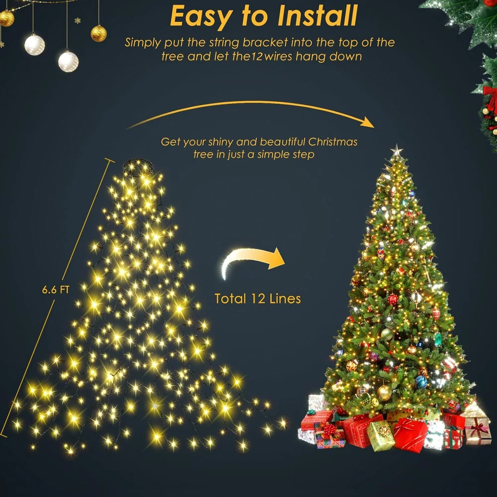 Store New Arrivals Add to Favorite View Feedback Contact Fast deliveries to the customer's home Quality customer service John Make the customers happy! Easy Christmas Tree Lights Indoor Outdoor, 420 LED Christmas String Lights 6.6FT X 12 Lines with 8 Modes & Timer, Waterproof Twinkle Lights Plug in for 6FT- 8FT Xmas Tree Christmas Decor (Warm White) Description Perfect Christmas Tree Lights Indoor Outdoor: The green wire LED Christmas string lights is perfectly designed for Xmas tree. There are 12 lines of 6.6FT string lights around a metal ring and you can just put the ring around your Xmas tree top for easy decoration. Size: 6.6FT 12 lines. Each line has 35 super bright LEDs. Leading wire 5M (16.4FT) Safe UL Adaptor Powered:The Christmas light is powered by a safe 29V low voltage UL adaptor. The LED will be cool and not get over heated with long time use. The LEDs are safe for touch 8 Lighting Modes:There are 8 lighting modes: Combination, In waves, Sequential, Slow Glow, Chasing/Flash, Slow fade, Twinkle/Flash, Steady on. Press the round button on plug to adjust the modes Memory Function & Timer Function:Built-in memory IC will remember your lasting lighting mode . And long press the button of the adaptor, you can turn on/off the timer funcion (6 hours ON and 18 hours OFF) (When the indicator LED turns green, it means the timer function is ON and the light will turn on the same time everyday for 6 hours, no need to set the light everyday) Weatherproof IP44:This decorative lights is IP44 weatherproof . And with its' long leading wire (5M) of the string light, keep the adaptor itself in dry place and it can be widely used both indoor and outdoor. No worries about moisture, rain, snow and other bad weather Outstanding Customer Service: If you have any question or problem about our product, please feel free to contact us and our customer service team will respond you in 24 hours Product Description EXF Christmas Tree Lights Indoor Outdoor 1 Upgrade Lights 2 Safe to Touch 5 Colors to Choose 3 Colors to Choose 1 6.6FT*12Lines 2 6.6FT*8Lines Item model number MLS-D29V6WUC-O Light Source Type LED Style Modern Number of Items 1 Power Source AC/DC Number of Light Sources 420 Control Method Touch Theme Christmas Batteries Included? No Controller Type Button Control Batteries Required? No Material Plastic Seasons Christmas Package Dimensions 6.42 x 4.09 x 3.23 inches Included Components Christmas Tree Lights Indoor/Outdoor Usage Indoor Bulb Base E26 Country of Origin China Light Color Warm White Water Resistance Level Waterproof Item Weight 15.8 ounces Occasion Christmas Special Features Corded Special Feature Corded Part Number MLS-D29V6WUC-O Color Warm White Wattage 6 watts Voltage 29 Volts Size 6.6FT*12 ABOUT US We offer the best prices around on high quality products. Our E-store includes media such as books, movies, music and games while offering electronics, toys, sporting apparel, clothing, tools, general home, garden items and more. SHIPPING We are always working hard to ensure your package arrives as soon as possible. Please understand that some factors like weather, high postal traffic, and the performance of shipping companies are outside of our control. We offer free shipping to the lower 48 states and ship within 2 business days of payment, usually sooner. We do not accept P.O. Boxes. Please provide a physical address. For shipping outside of the continental USA, we only use eBay's Global Shipping Program. The item is shipped to KY and then sent to the rest of the world. International customers are responsible for all duties and taxes. Continue to 'check out' to calculate costs for shipping the item to your country. Messages regarding eBay's Global Shipping Program MUST be directed at eBay EXCLUSIVELY. RETURNS We offer a 30-Day Return Policy on items in which you are not completely satisfied with. You have the option of a full-refund or an exchange of the item. No returns are available on items shipped outside of the USA PAYMENT We accept PayPal. CONTACT US This page content is yet to come Please ad us to your favorite seller and visit again later Thank You CUSTOMER SATISFACTION We try our very best to make sure every customer is completely satisfied. If there's a problem, message us! We're happy to help. WE ACCEPT