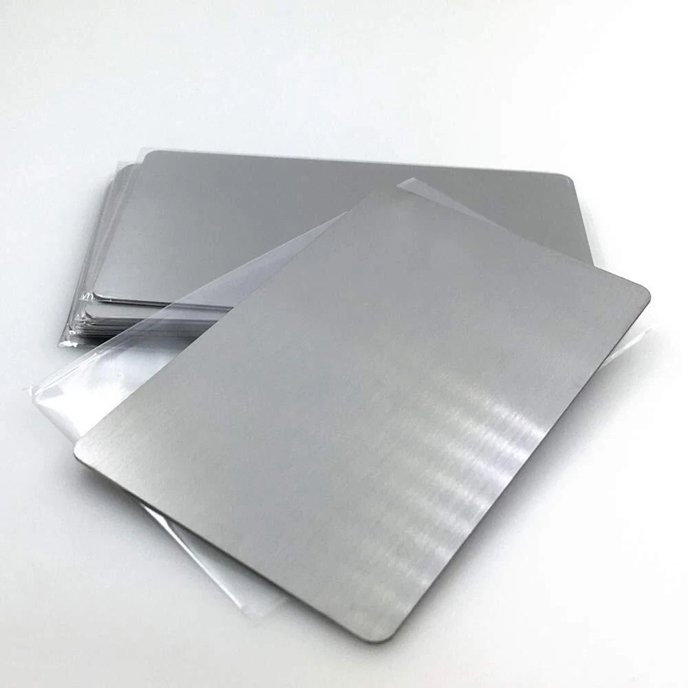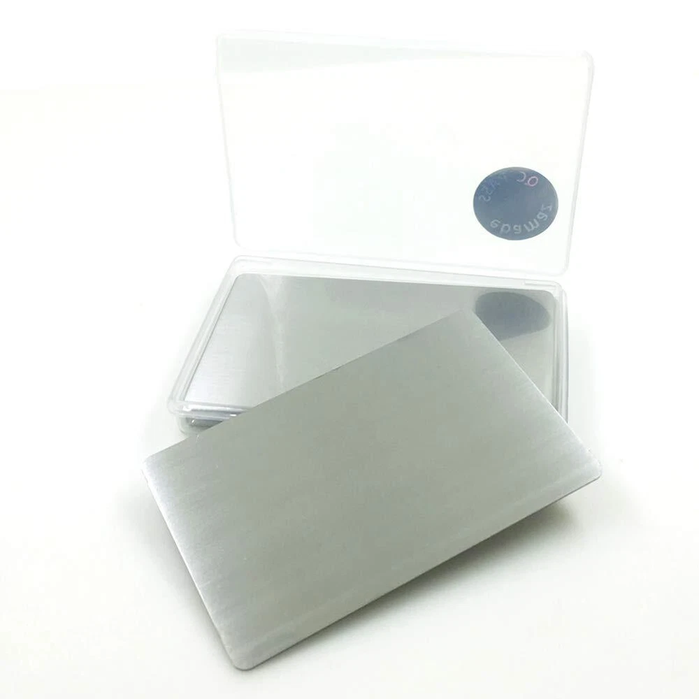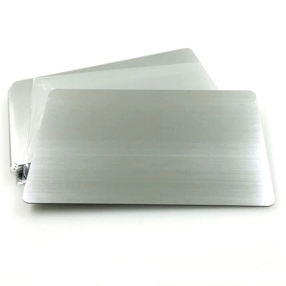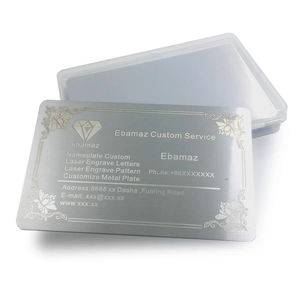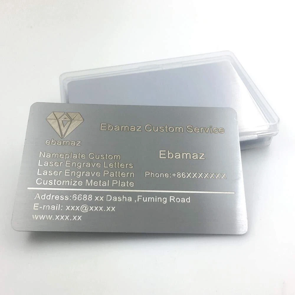 Specifications: Material: Stainless Steel Size: 86X54X0.5mm (about 3.4 X2.13X0.02 inch) Colors: Brushed Finishing Silver Package: Solid perfect seal packed Quantity: Single Color 10pcs per case Package: 10 X Stainless Steel Metal Card Silver Blank 1. Blank cards, thick & firm, thickness 0.5mm,not easy to bend. 304 stainless steel material, brushed finishing silver surface.10PCS single color per pack.Similar size as the bank card 86X54mm. Solid perfect packed,convenient for carry 2. High class metal business card design, blank /round corner/edge not rough. Suitable as VIP card or gift metal card for company or organization to make it more outstanding and unique. Engraved logo will not be removed,it is lifetime 3. It is a good choice as Promotion Metal Business VIP Cards / Promotion Card / Metal Plaque / Nameplate / Desk Tag / Lable tag / Name Card / Desk Number Tag / Metal Cards to Personalized your artwork on it 4. Make sure your engraver can engrave metal, ours is fiber laser machine 15W for your reference. Low watt like 5W or less might not come out a good effect 5. These cards mainly for engraving, please Notice: CO2 engraver CAN NOT engrave metal material, it mainly engraves wood, Acrylic, plastic..but not metal 6.Notice: It can not attract magnets