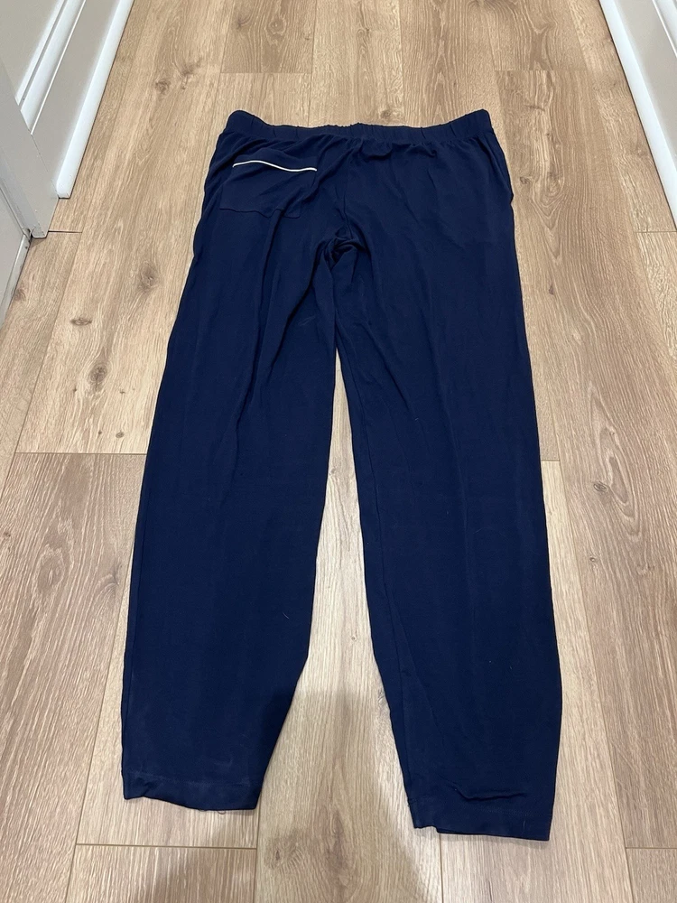 The product is a pair of Eberjey William Tencel Modal Long Pajama Pants in Men's size XL. The pajama pants feature a solid Bordeaux color, button closure, and are made of a blend of spandex and modal fabric. They are designed with a drawstring for a comfortable fit and are machine washable. The pants are lightweight, ideal for wearing during the summer, fall, and spring seasons. This classic style pajama pants from eberjey are perfect for men looking for comfortable and stylish sleepwear.