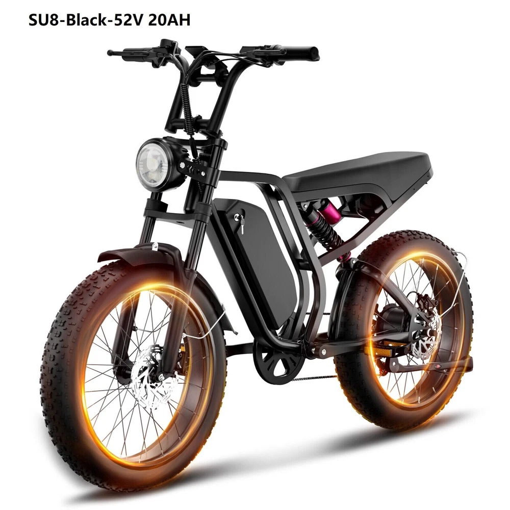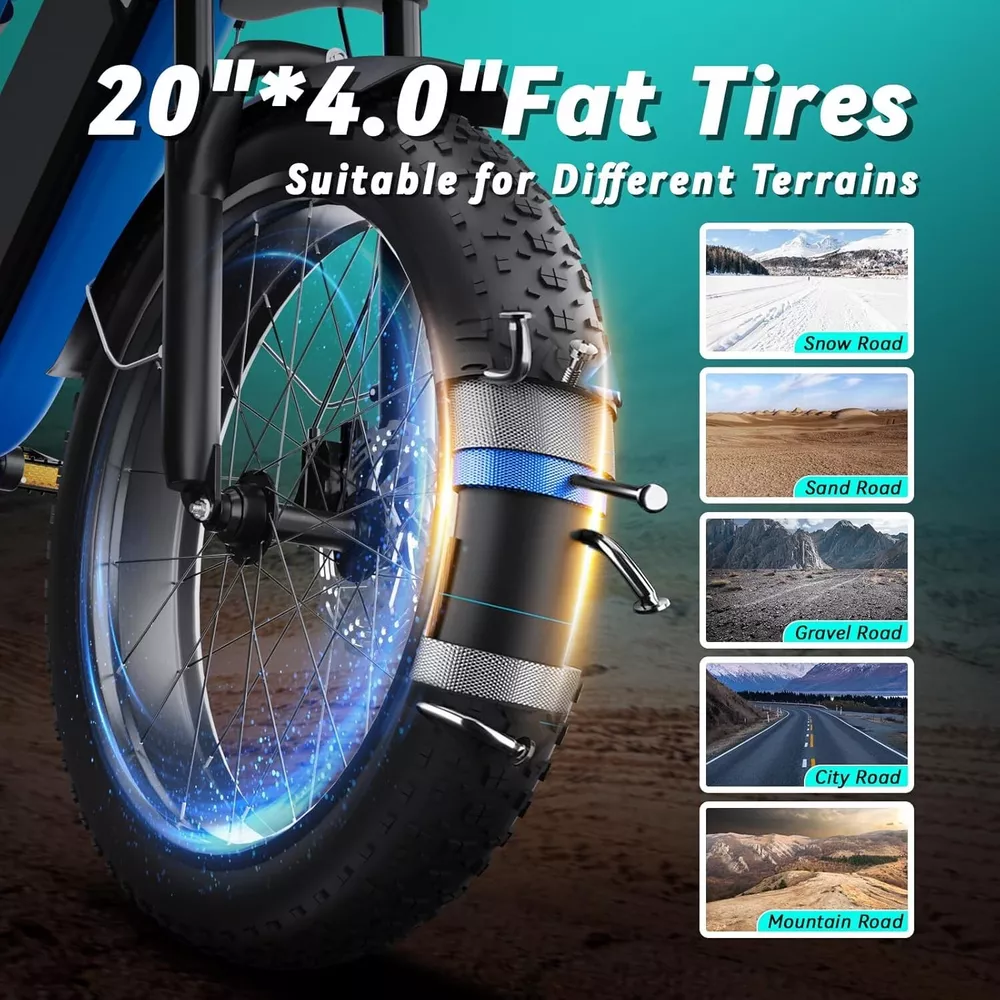Ebike 20" Fat Tire Mountain Electric Bicycle for Adults 1000W 52V 31Mph E-bike