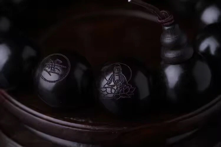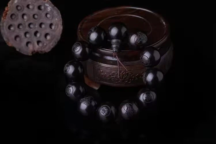 Ebony 15mm Beads Buddhist Prayer Bracelets Great Sculpture Buddha Bracelet