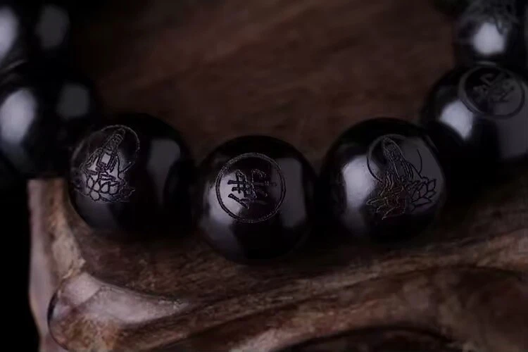 HomeEbony 15mm Beads Buddhist Prayer Bracelets Great Sculpture Buddha Bracelet