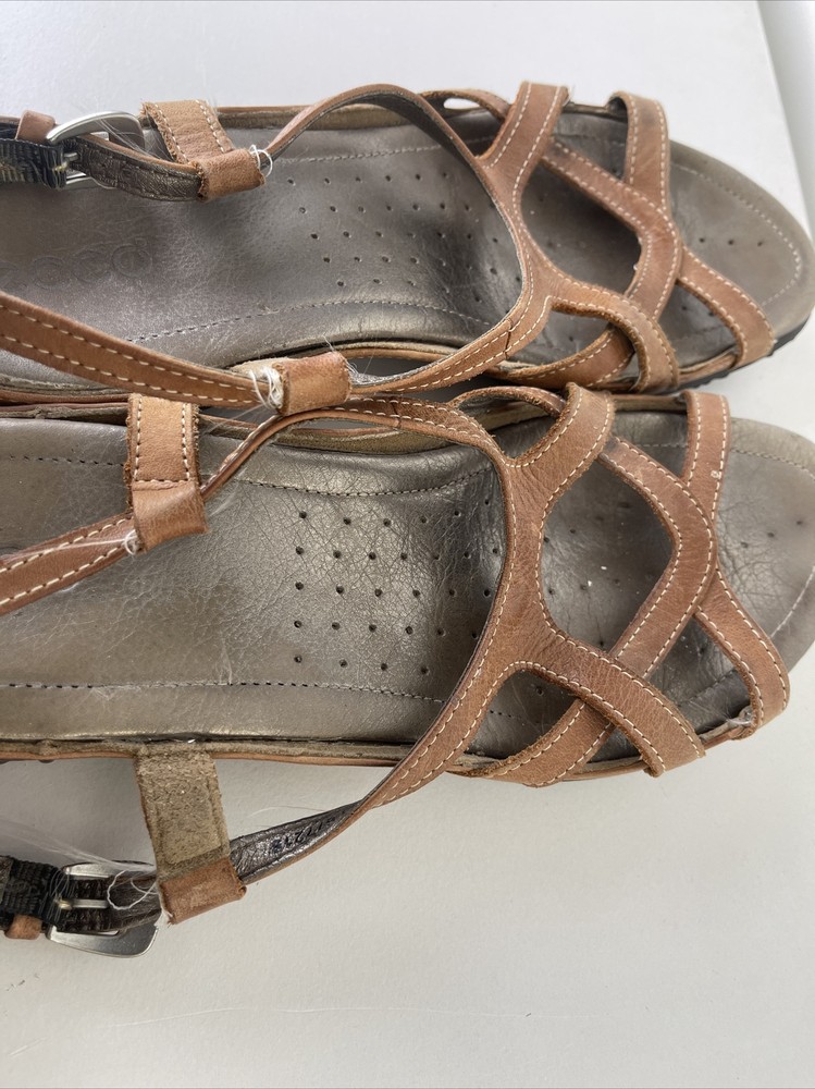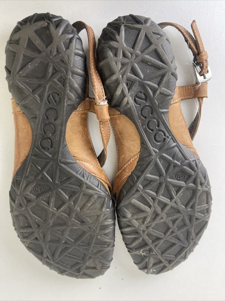 Ecco Brown Leather Slingback Sandals Womens 40 US size 8.5 Open Toe Shoes. Box 4