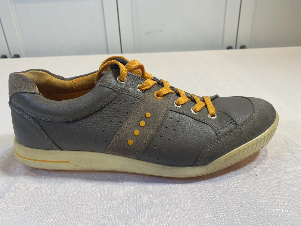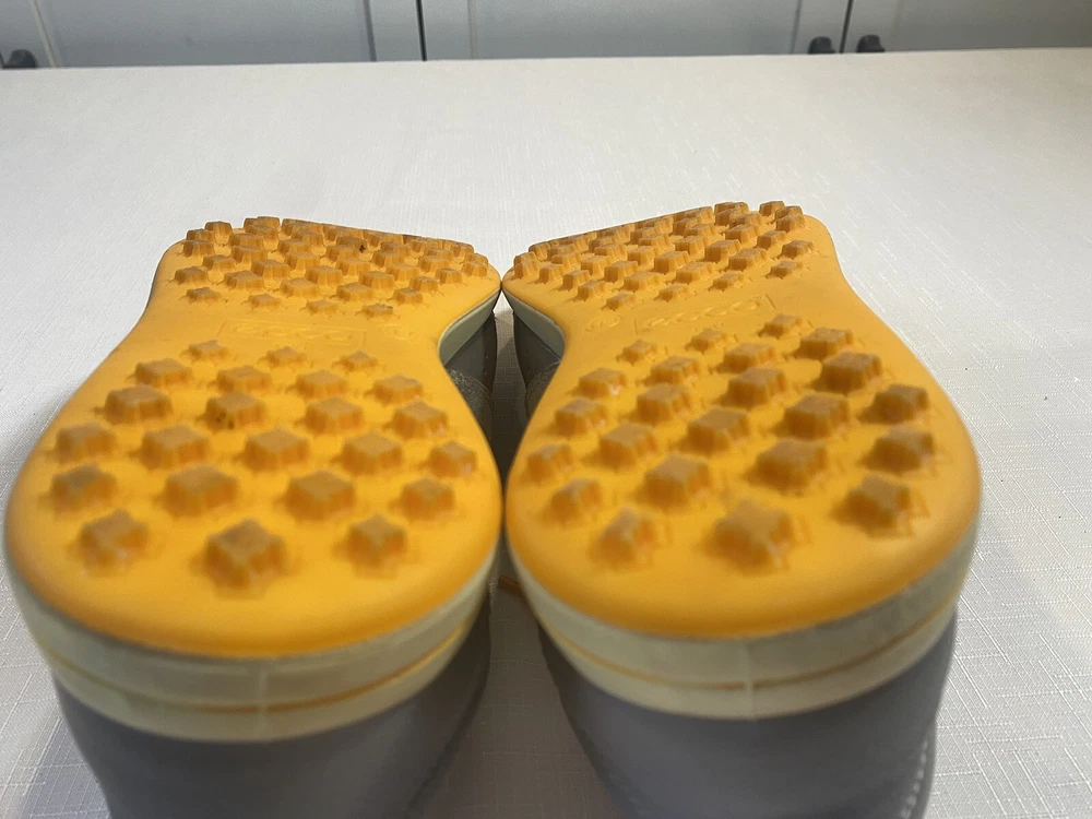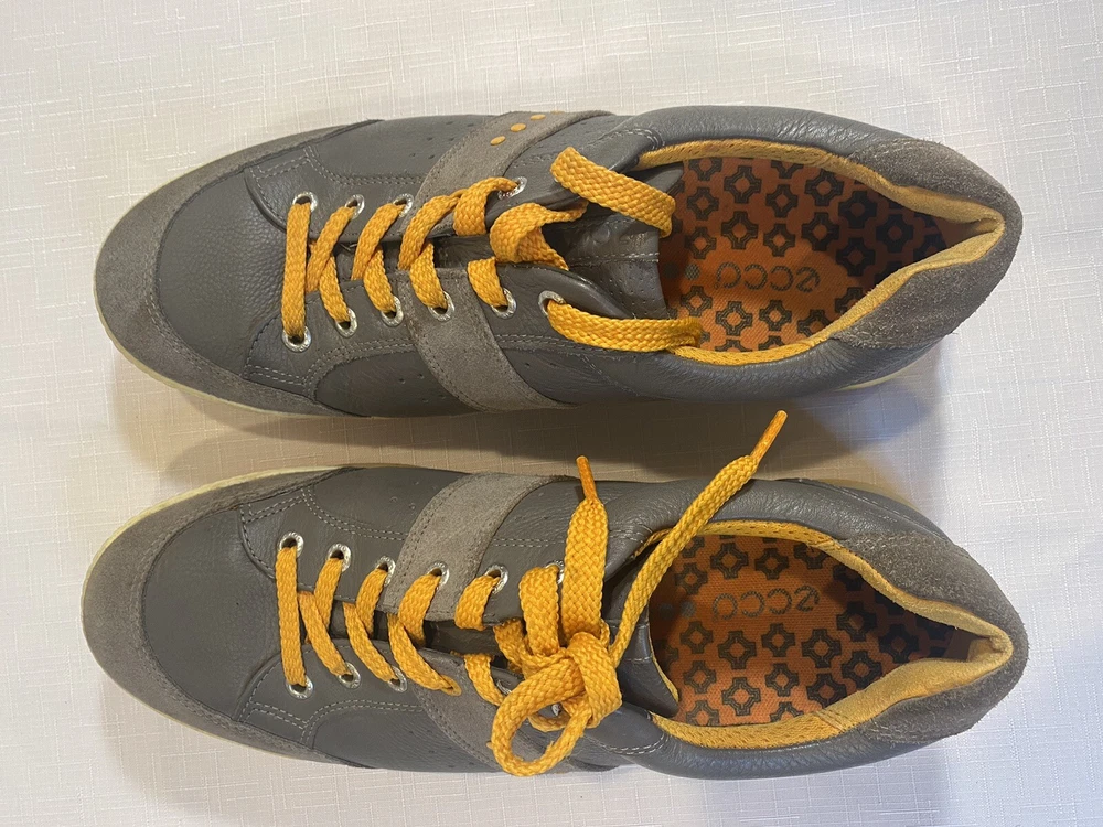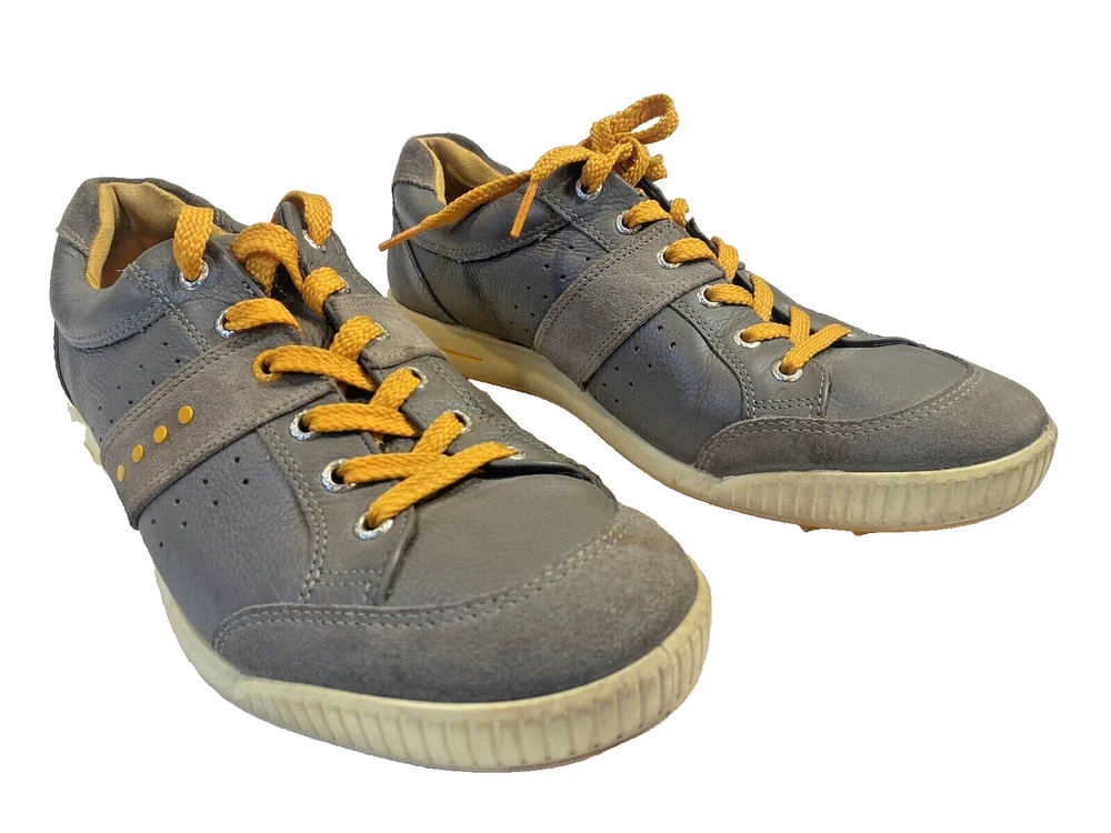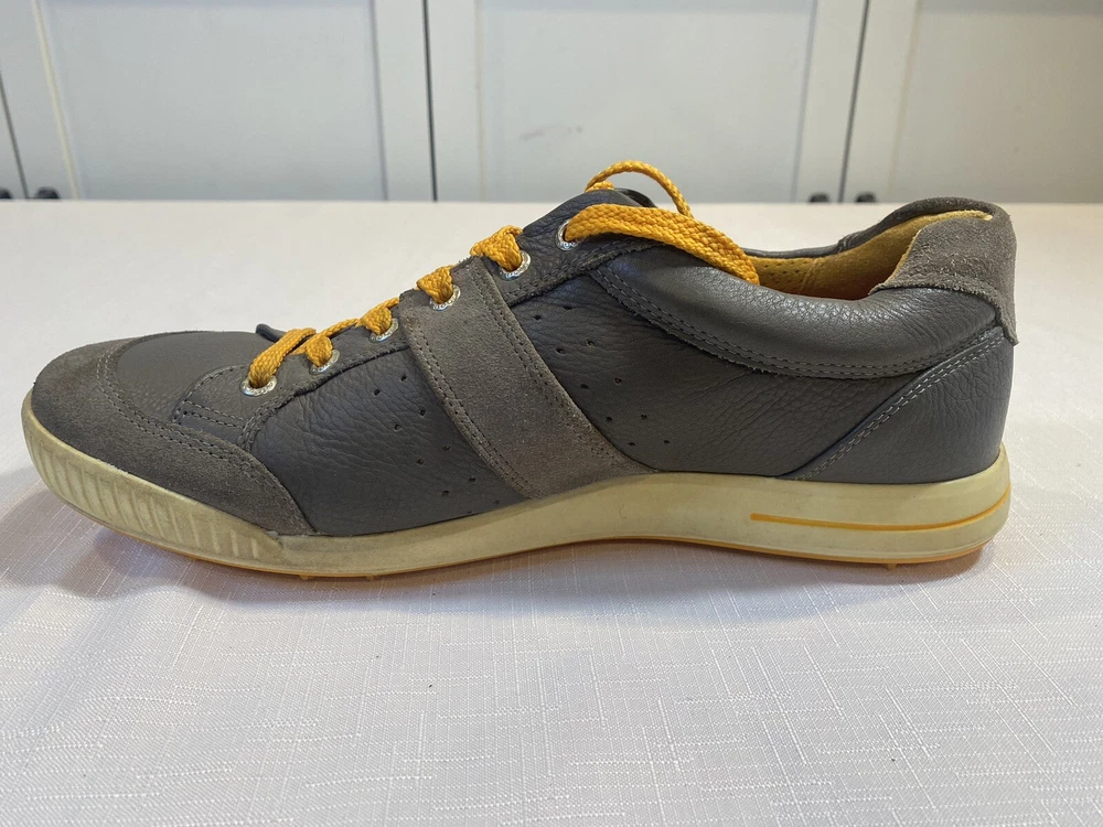 Ecco Biom Hybrid Spikeless Golf Shoes Grey Orange EUR 43 US 9. Excellent preowned condition. Slight discoloration to lower white/off white soles. Spikeless bottoms in great condition.