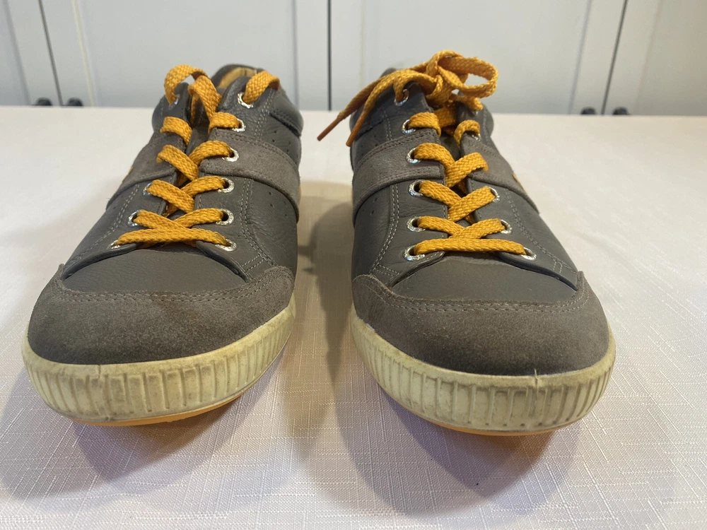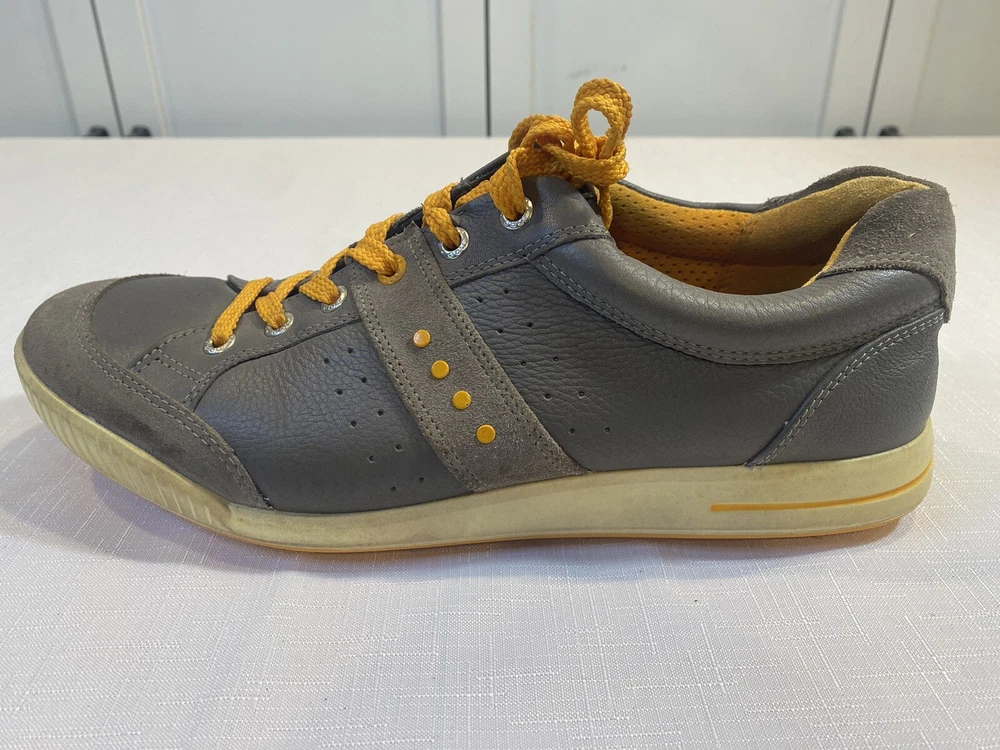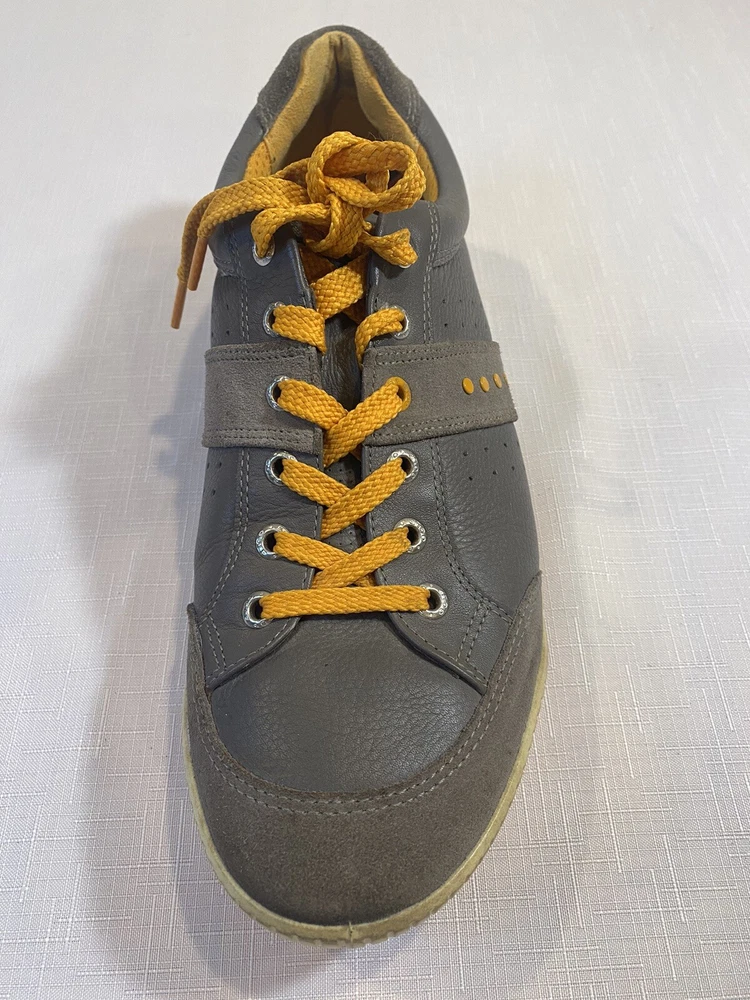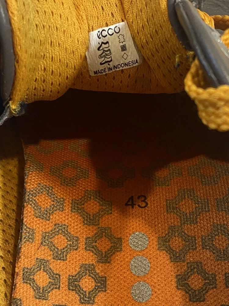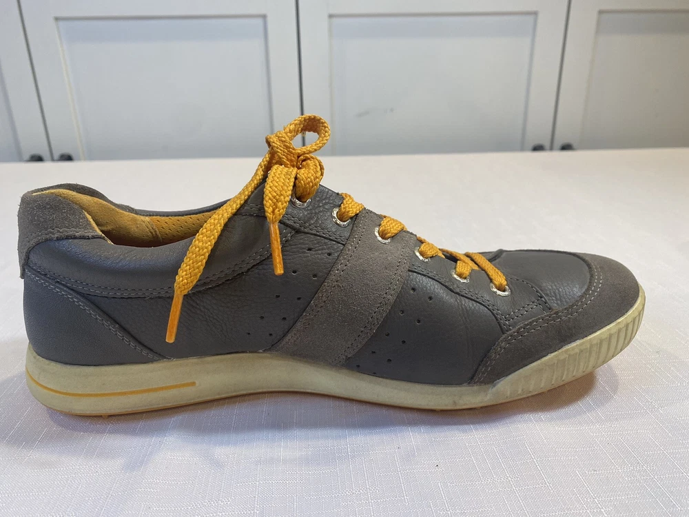 Ecco Biom Hybrid Spikeless Golf Shoes Grey Orange EUR 43 US 9. Excellent preowned condition. Slight discoloration to lower white/off white soles. Spikeless bottoms in great condition.