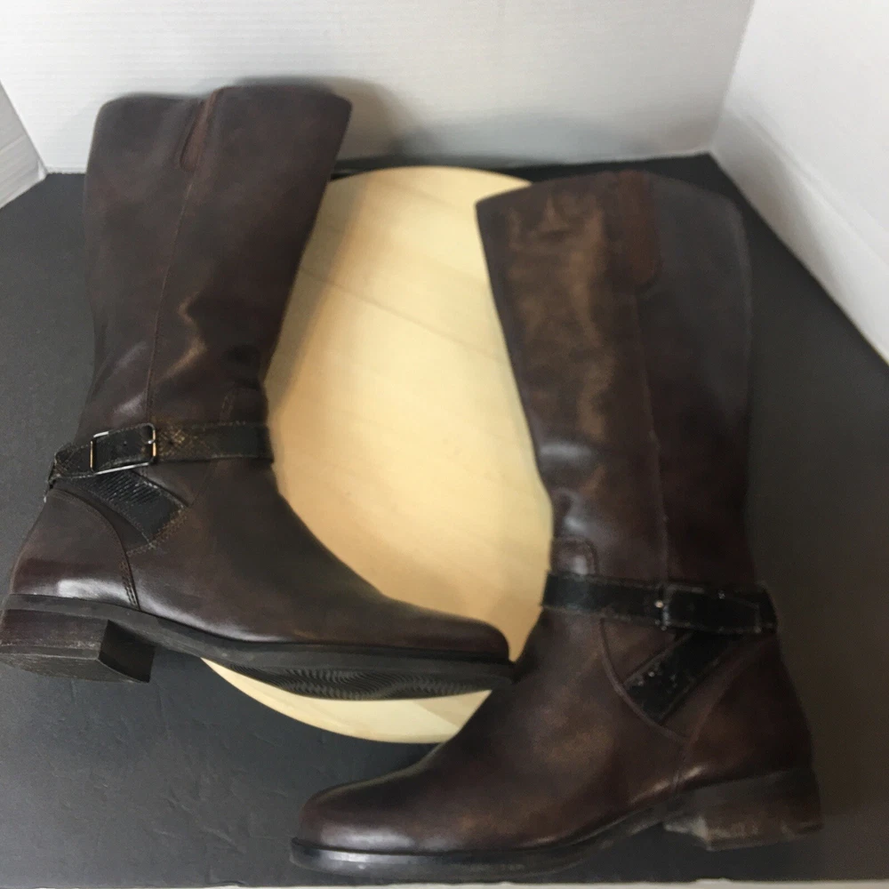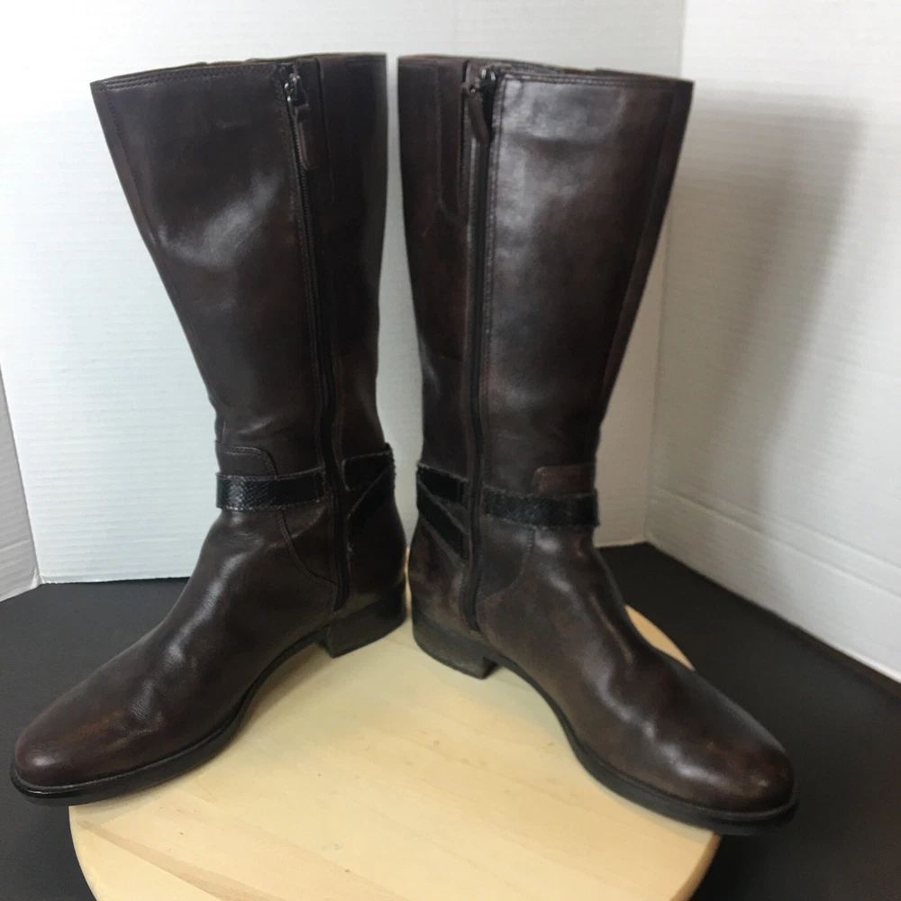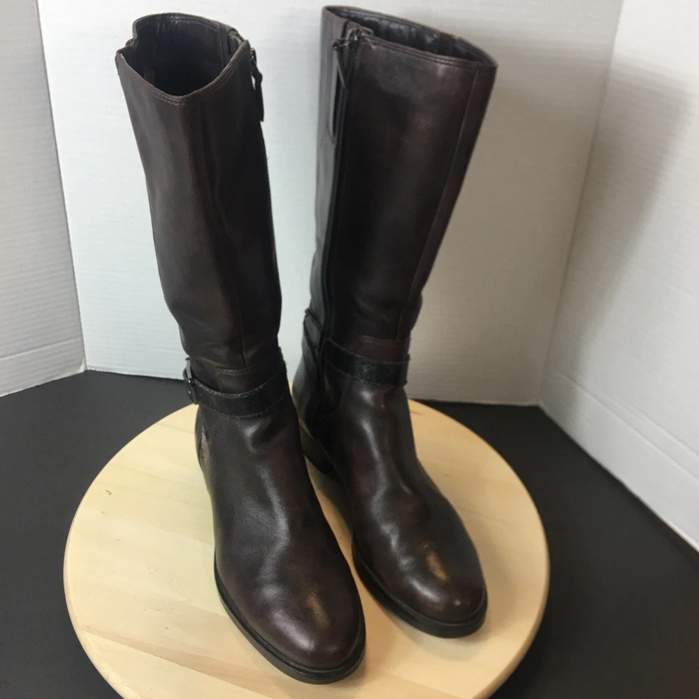 Ecco Women's Brown Leather Tall Boots Size EU40 US 9 Zip Closure Rm Shlf