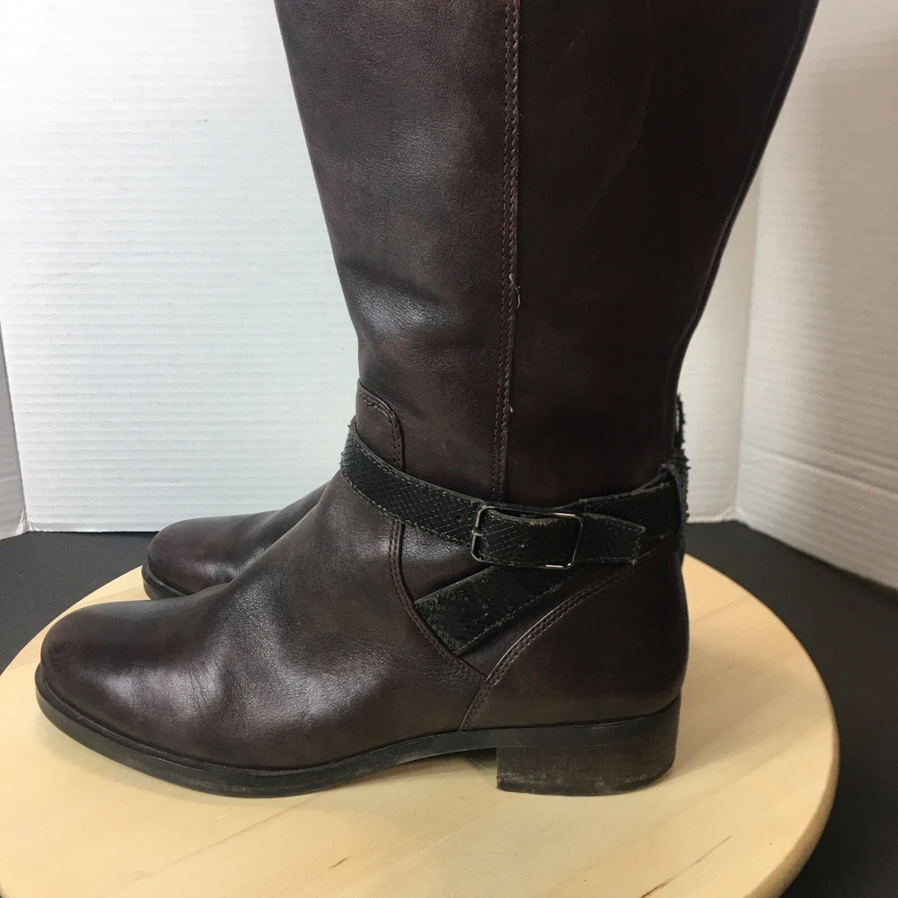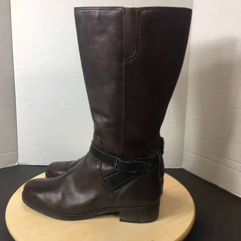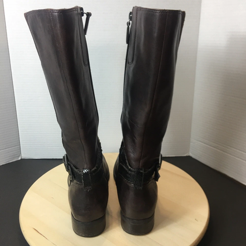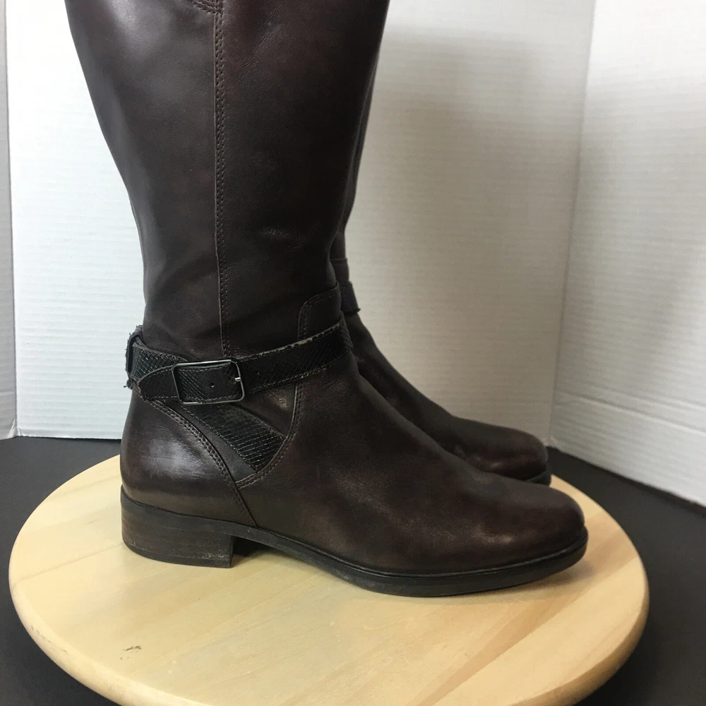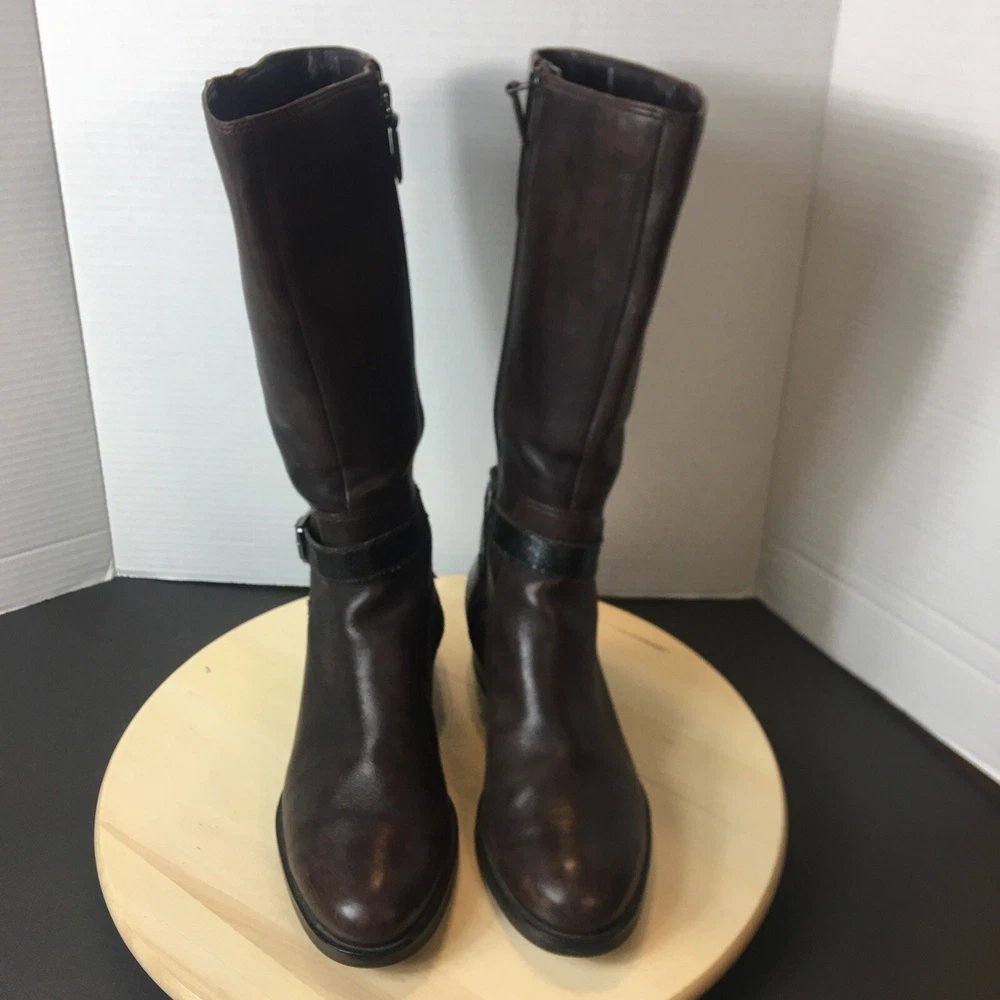 Ecco Women's Brown Leather Tall Boots Size EU40 US 9 Zip Closure