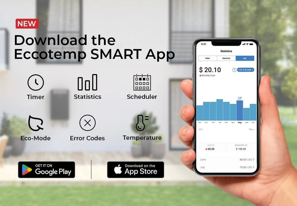 Powered by Frooition All Categories Eccotemp SH22-LP 6.8 GPM 140,000 BTU 120 Volt Residential Outdoor Liquid Propane Tankless Water Heater with Smart Button and Wi-Fi Connectivity Overview Item Description Heat your water smarter with the Eccotemp Smart Home 6.8 GPM Outdoor Liquid Propane Tankless Water Heater (SH22-LP). The technology-driven design guarantees comfort and ease, providing limitless hot water while conserving both space and energy. Leading the revolution in home comfort technology, this tankless water heater is the first all-in-one smart solution patented in the market. Say goodbye to the complex and costly integrations of traditional heaters, this model comes with a built-in smart system, streamlining your home's water heating functionality within a single device. Envision a home that anticipates your needs, where you can orchestrate your water heater's operation with just your voice. Thanks to its Wi-Fi connectivity, this heater can be paired with Amazon Alexa and Google Home to access smart voice commands, and the Eccotemp mobile app allows you to control and monitor your water heater from anywhere. Start your day with a hot shower by simply saying, "Alexa, turn on water heater". With the smart tankless water heater, you'll have a personal assistant ensuring your comfort. Harness the power of the Eccotemp mobile app to manage your water heater from any location. Personalize temperature settings, establish routines, set timers, and view in-depth consumption data, including costs right at your fingertips. This enables you to tailor your hot water usage to fit your lifestyle, maximizing energy efficiency and minimizing utility expenses. Furthermore, the Eccotemp app sends maintenance alerts directly to your phone, keeping you informed about your water heater's health, ensuring longevity and peak performance. Features: Flow rate of 0.5 - 6.8 GPM Available temperature settings range from 90 to 140°F (default setting of 110°F) Includes electric ignition CSA certified for installation in the US and Canada This heater provides on-demand hot showers for up to 3 bathrooms simultaneously Ideal for almost any standard-sized single-family home, townhome, condo, cabin, apartment, or light commercial use. Use the Eccotemp mobile app to track energy consumption, adjust temperatures, set schedules, or even detect product and network errors Versatile smart app settings that display your desired currency (USD/CAD), dual-mode Fahrenheit and Celsius temperature readings, and preferred gas measurement unit, offering a personalized understanding of your usage Seamlessly connect with Amazon Alexa or Google Home for voice command functions Smart Power Button feature turns your model on or off, detects error codes, connects to wireless networks, and enables sleep mode to prevent unnecessary energy use, all with a simple touch The SH22 Series can be complemented with the patented, one-of-a-kind EZ-Flush Descaling Kit to ensure your tankless water heater is running at maximum efficiency all year long Expertly constructed with rigorous engineering, this water heater is built to last while providing superior efficiency and unrivaled reliability, ensuring you will benefit from its service for years to come Unlock substantial savings with the Eco Mode feature, a smart solution that can help you reduce energy consumption by up to 25% Covered under 2 year parts, 30 day accessories, and 5 year heat exchanger manufacturer warranties Specifications: Width: 14" Height: 23" Depth: 7-1/4" Fuel Type: Liquid Propane Gas Connection: 3/4" Connection Size: 3/4" Water Pressure (Min): 25 psi Water Pressure (Max): 150 psi Temperature (Min): 90°F Temperature (Max): 140°F Voltage: 120V Amperage: 0.7A Eccotemp Systems, LLC is a manufacturer of energy efficient products located outside of Charleston, in Summerville, SC. Their goal is to educate consumers and trade professionals about energy savings and efficiency primarily in the form of heating water, including benefits, total investments, installation and more. Seeing tankless and heat pump technology was the predominant method of heating water in every other part of the world, Eccotemp searched out and engineered a solution for the US and Canadian markets. Until Eccotemp, the only tankless units on the market were larger, extremely expensive units. Recognizing that a whole house tankless unit could be engineered, manufactured and delivered to the end consumer for about the same net cost of a standard water heater, Eccotemp was born. Over the past years, Eccotemp has taken a realistic and practical approach to its technology - delivering a state of the art tankless unit at an affordable price point. Why Choose BuildInc? OUR PROMISE TO YOU About Us At Build, we promise to provide the best selection we can, most competitive pricing, and unmatched customer service. Our store has quality home improvement products from trusted manufacturers like Moen, American Standard, Delta, Kraus, Kichler, Progress Lighting, Schlage, Kwikset, Baldwin, Broan, NuTone, Air King, and Rev-A-Shelf. With over 200,000 home improvement products for you to choose from, we have just what you need to get your project done. Fast & Free Shipping We promise to make it our priority to get you your items as fast as we can. We ship from 440 warehouses around the country, ensuring that your product will get to you as soon as possible. We know you're eager to get your hands on your new purchase, we would be too. As a bonus, most items ship for free. Returns We are happy to accept returns of unused or defective items for a refund within 30 days from the date of delivery. For returns outside 30 days, please contact our Customer Service team to go over our options. For full details, please view the Shipping and Payments tab above. To initiate a return simply go to the eBay Returns Portal and submit a return request. We ask that all items be returned with all original components via a traceable method. Once