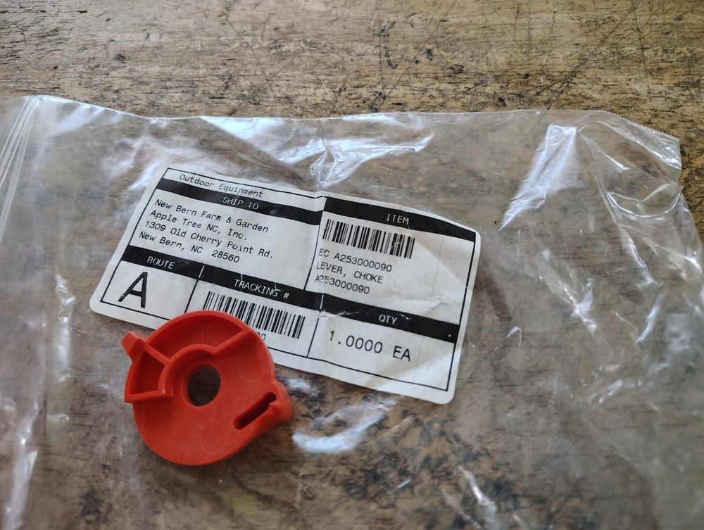 I have a brand new echo choke lever for sale. The part number is a253000090. The stock name is echo parts and the location is shop in box 1. - I have 3 business day handling on all of my listings. Please look to see the estimated delivery date. If you need your item shipped sooner please message me. - Shipping will be done the most economical way. I ship with USPS, Ups and speedee delivery. -My used parts may be dirty so they will need to be cleaned before installing. They come as seen in the pictures. If you are using the parts for a restoration please message me before purchasing so I can look for small imperfections. Normally the used parts I sell aren't restoration quality. - Before leaving negative or neutral feedback please message me and give me a chance to make it right. I do make mistakes on occasion and I like the opportunity to make it right. -Thanks for your business!