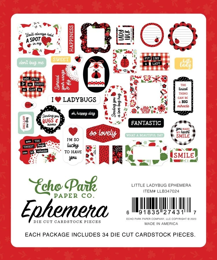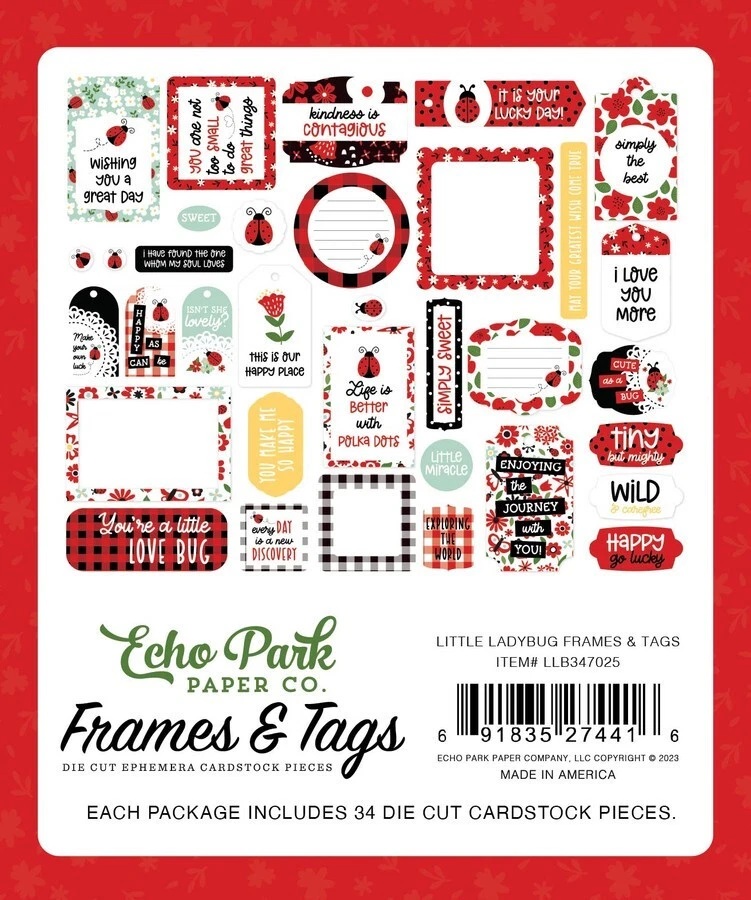 Echo Park LITTLE LADYBUG *2 Packs* Ephemera Die Cuts + Frames & Tags 66pcs