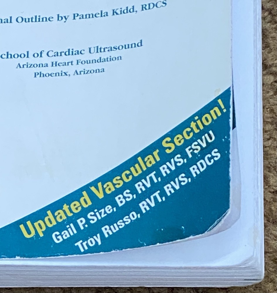 ISBN 978-0-615-76835-9 The Echocardiographer’s Pocket Reference Fourth Edition Terry Reynolds, BS, RDCS With UPDATED VASCULAR SECTION! Original Outline By Pamela Kidd, RDCS School of Cardiac Ultrasound Arizona Heart Foundation Phoenix, Arizona *** Please see pictures for condition/flaw’s*** There is NO Writing, highlighting, circling, or underlining. There are NO ripped, torn or missing pages. There are pictures that show minimal wear to the front and back cover. ( mostly scuffs and scratches. Small stain to the edge. The Title page has a smudge that looks like someone tried to wipe it and made the smudge bigger ? Nothing major.