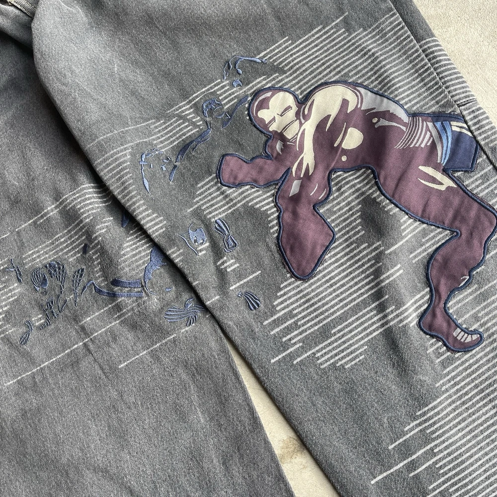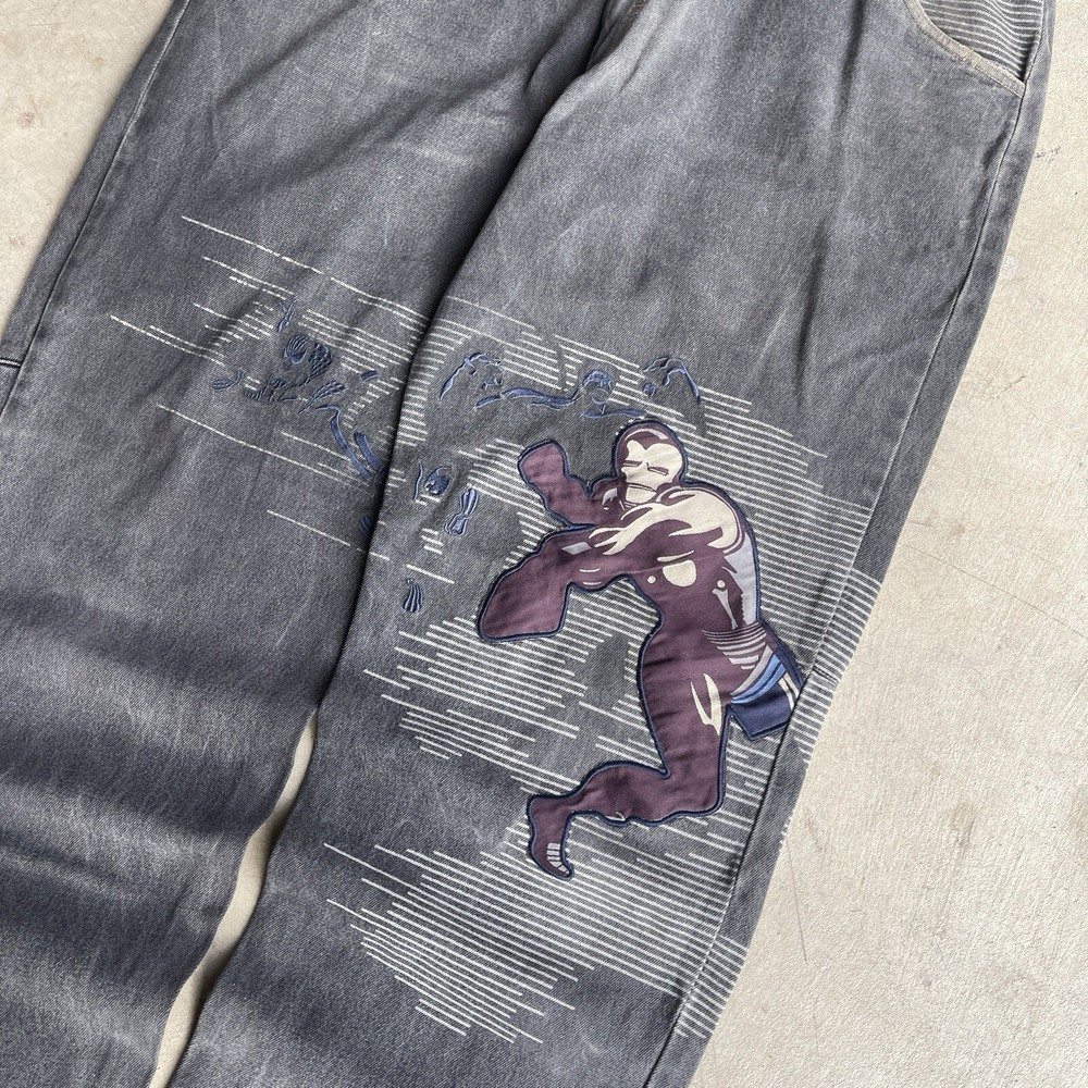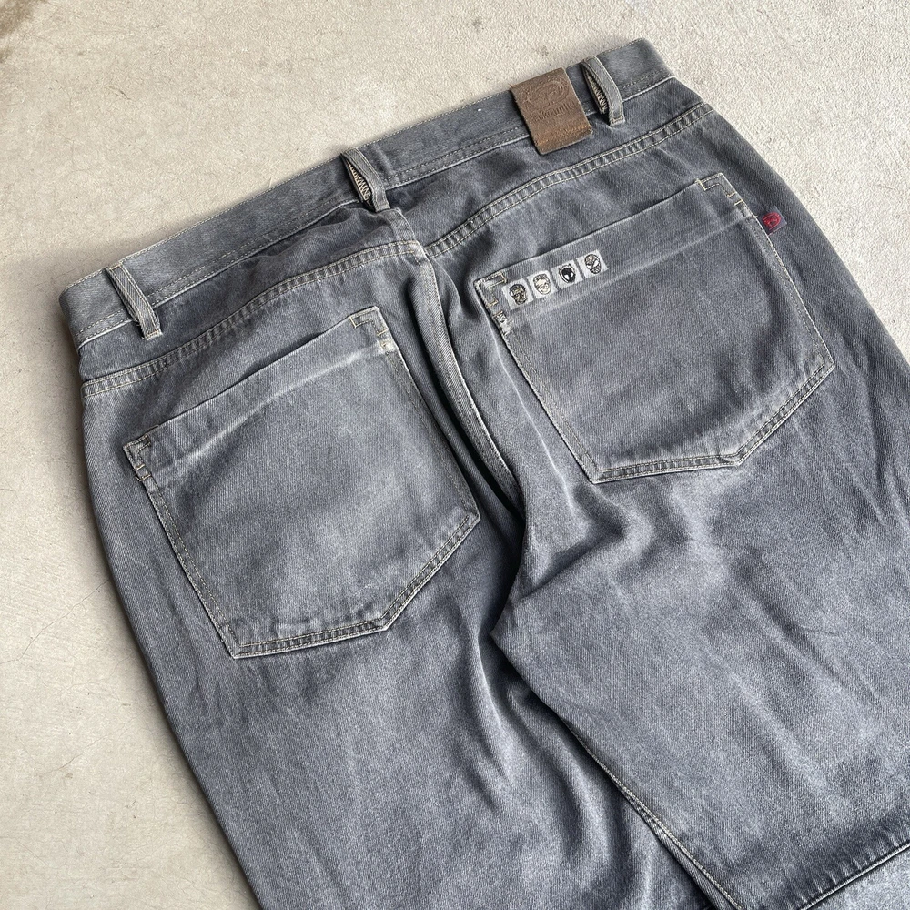 Insane faded black wash/gray baggy ecko jeans with avengers embroidery Tagged a size 36, measured 39x33 with a 44” outseam Good condition, no rips or tears but they do have a busted zip