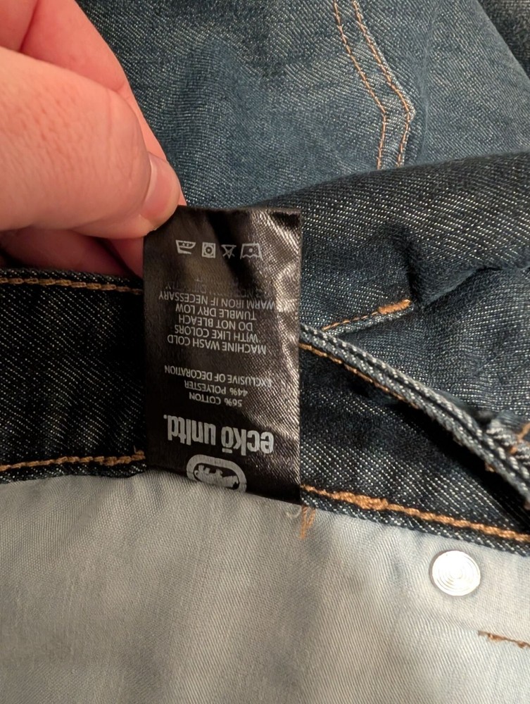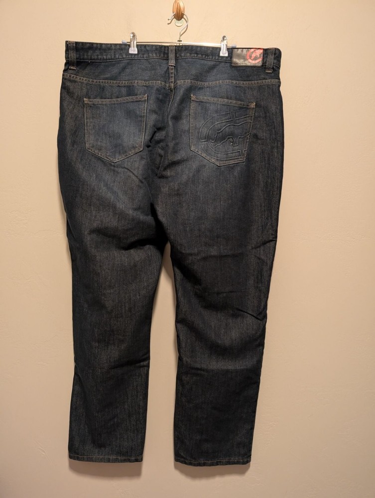 Pre-Owned Condition (see pics for details) Measurements taken with garment laying flat Measurements are approximate: Waist: 46" Rise: 14" Inseam: 33" These denim jeans from Ecko Unltd offer a classic look with a modern fit. Crafted from cotton, they provide comfort and durability. With a versatile dark wash, these jeans are suitable for casual outings and everyday wear, reflecting a timeless style. • Button and zipper closure • Five-pocket style • Dark wash denim • Straight leg fit 13-0145 1.11 2.70