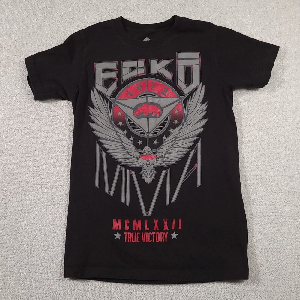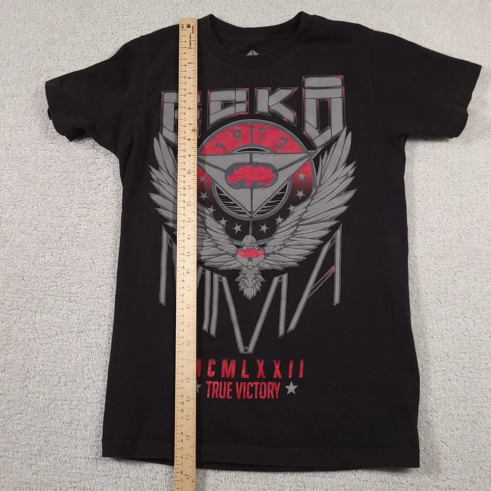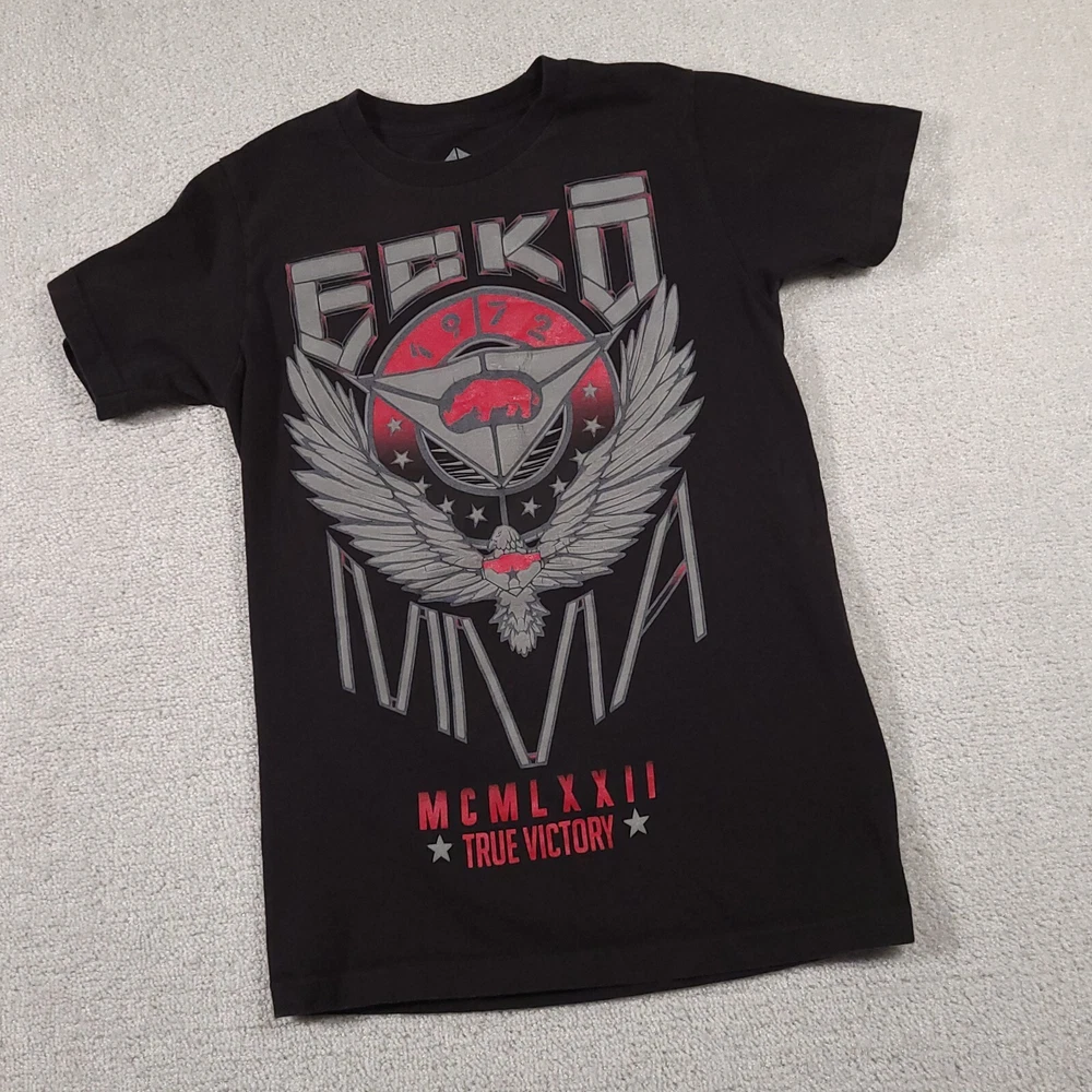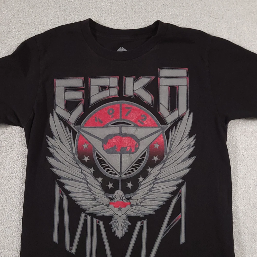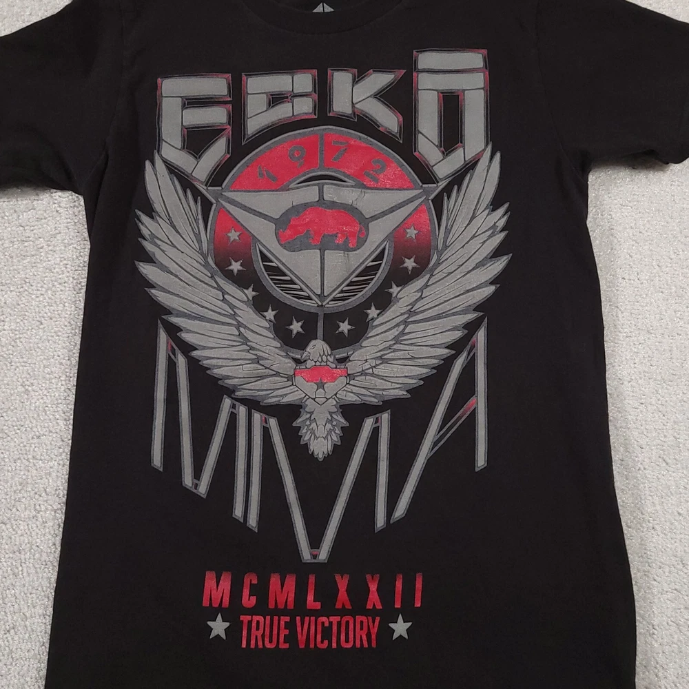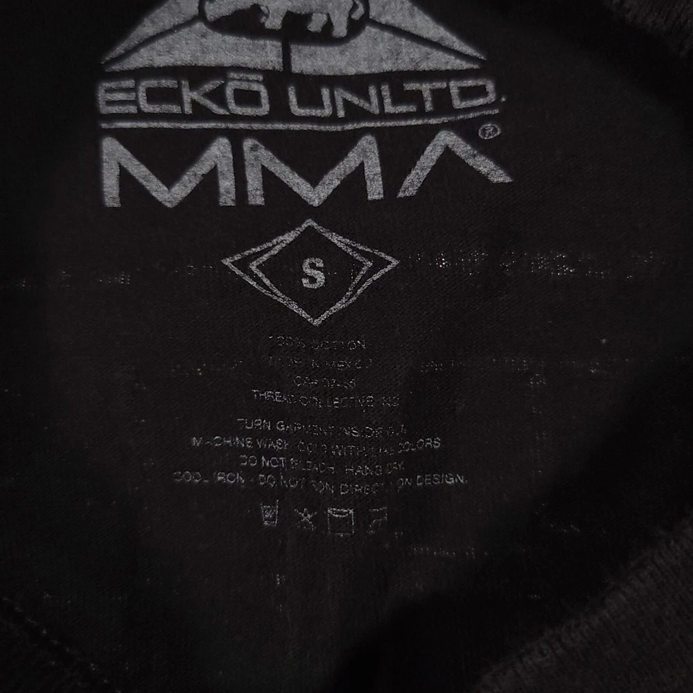 Ecko Unltd. Unlimited MMA T Shirt Mens Small Black Double Sided Grunge Please see above photos for all measurements Discoloration and pin holes as seen in photos