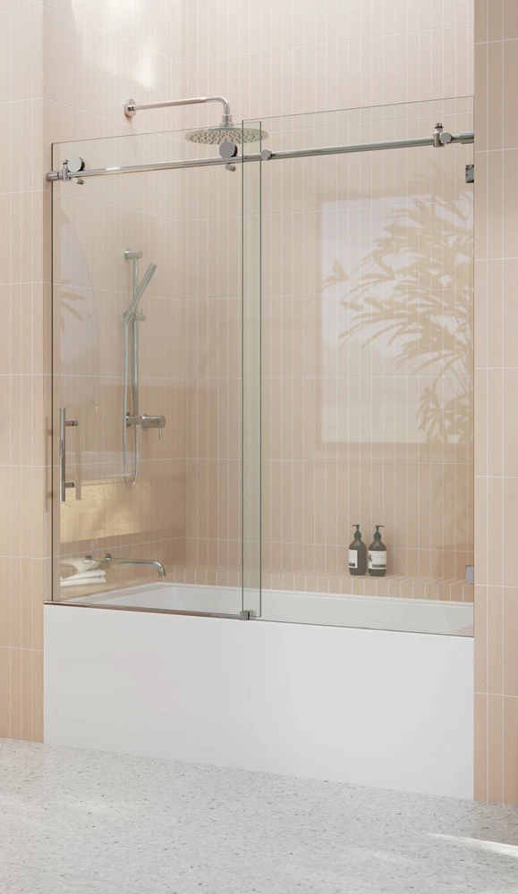 This frameless sliding tub door instantly elevates any bathroom with its sleek bronze finish and clean lines. The 3/8" tempered glass feels sturdy, and the water-repellent coating makes maintenance a breeze—no more constant wiping! Smooth-gliding operation and a modern look give a luxury feel without the high-end price. Perfect upgrade for both style and function.