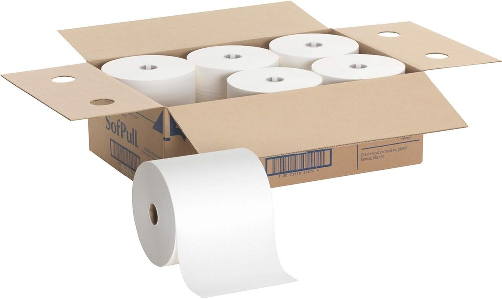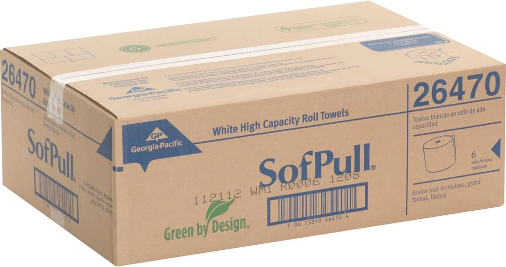 The item was shipped through US Stock, so it arrived faster than expected All items are brand new and unopened, 100% authentic, 24 hours message reply SofPull High-Capacity Recycled Paper Towel Roll by GP PRO (Georgia-Pacific), White, 26470, 1000 Linear Feet Per Roll, 6 Rolls Per Case, Green Brand: Georgia-Pacific Unit Count: 6.0 Count Sheet Count :6 Ply Rating: 1-Ply Special Feature :Soft, High Absorbent About this item Embossed, white sheet is absorbent and soft. Designed to be dispensed as 11 inch towels. Contains at least 40% Post-Consumer Recycled Fiber. Meets or Exceeds EPA Comprehensive Procurement Guidelines. Towel is uniquely designed with a plugged core to work with the SofPull Mechanical Touchless Towel Dispenser. Compatible with Georgia-Pacific 59316 , 59317, and 59489 SofPull towel dispensers (Sold Separately)